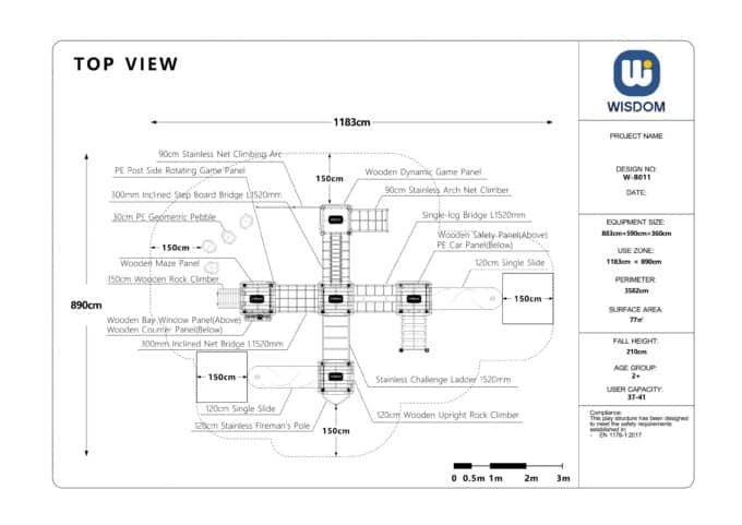 Alle relevanten Spezifikationen der großen Spielturmanlage finden Sie hier übersichtlich und präzise zusammengefasst: