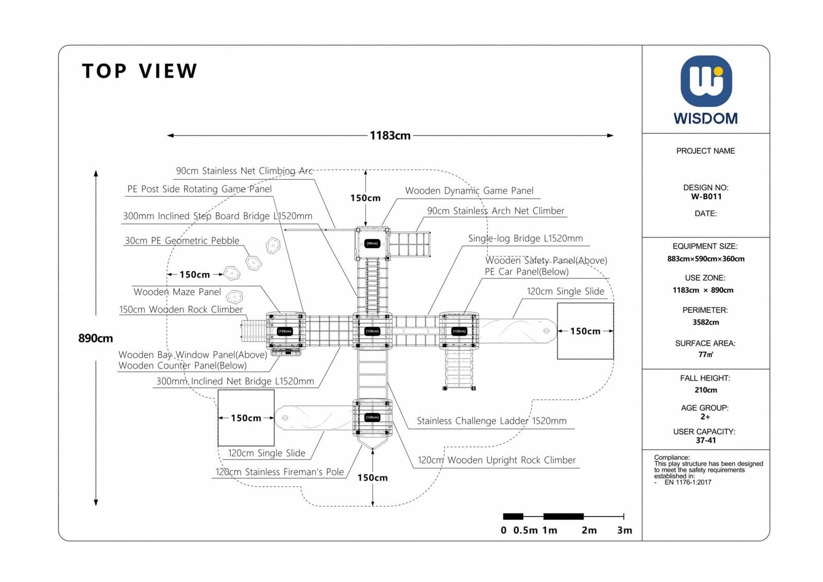 - Anpassbare Herausforderungen für verschiedene Altersgruppen: Obwohl die Anlage bereits für Kinder ab zwei Jahren freigegeben ist, bietet sie durch ihre Komplexität und die unterschiedlichen Schwierigkeitsgrade der Elemente langanhaltenden Spielspaß bis ins Grundschulalter. Jüngere Kinder erobern die niedrigeren Ebenen und die Rutsche, während ältere und mutigere Kinder sich an der Hangelleiter und den höheren Kletterelementen versuchen. So wächst die Anlage mit den Fähigkeiten der Kinder mit.