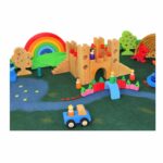 Diese kreative Landschaft ist ideal kombinierbar mit unseren anderen Bauspiel-Materialien. Ergänzen Sie den Teppich mit Holzfiguren, Bauelementen oder verschiedenen Fahrzeugen, um noch spannendere Szenarien zu kreieren. Kinder können Hochhäuser, Parks oder sogar kleine Dörfer aufbauen – die Möglichkeiten sind endlos!