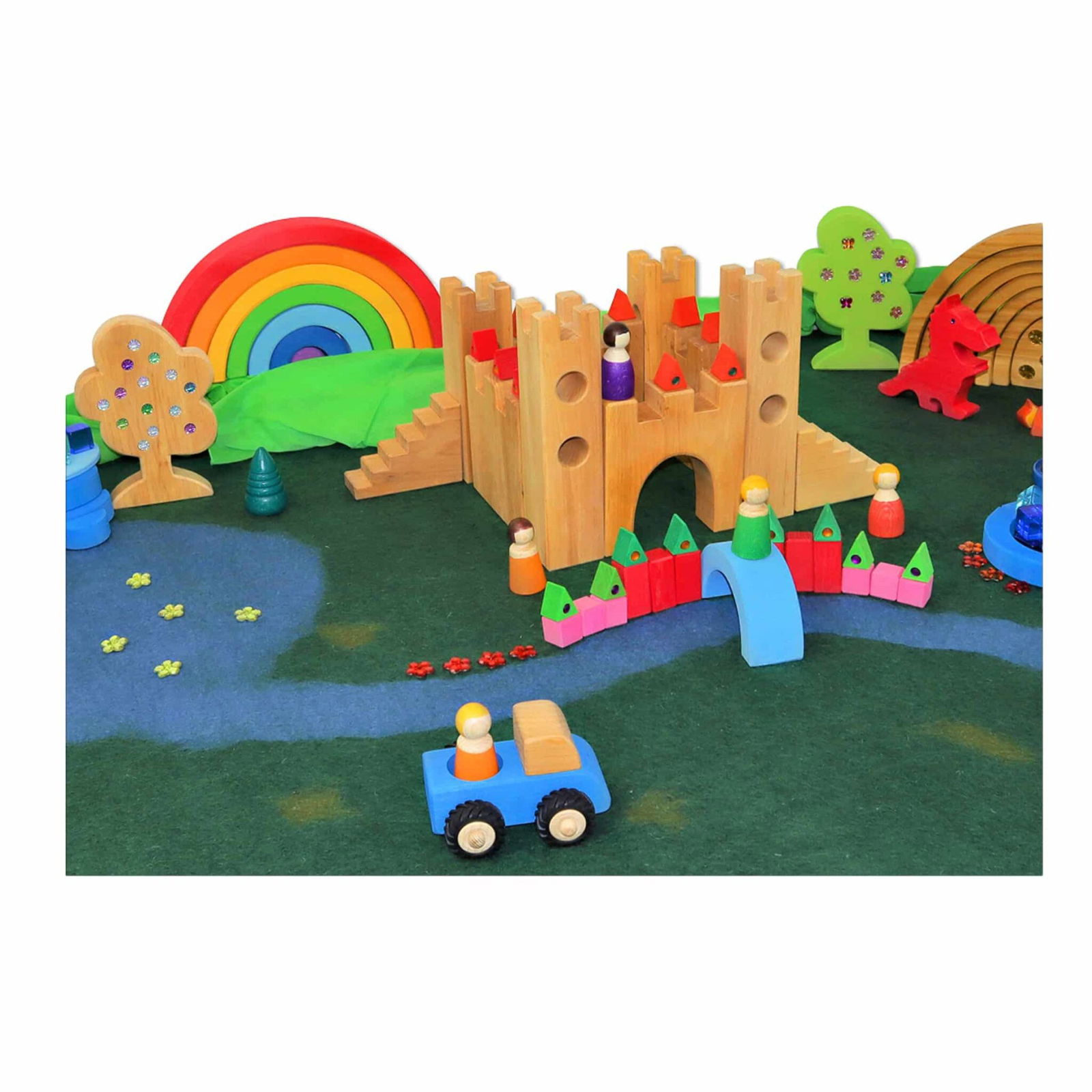 Lassen Sie die Kreativität Ihrer kleinen Entdecker mit unserem großen Filzteppich (160 x 130 cm) aufblühen! Dieser gemütliche und farbenfrohe Teppich ist der ideale Spielplatz für das „Kleine Welt“-Rollenspiel. Kinder können ihn mit Figuren, Bäumen, Fahrzeugen und selbstgestalteten Bauwerken verwandeln, um eine lebendige Landschaft zu schaffen, in die sie vollständig eintauchen. Ideal für Kinder ab 3 Jahren – der Filzteppich bietet unendliche Möglichkeiten für Abenteuer im Spiel!