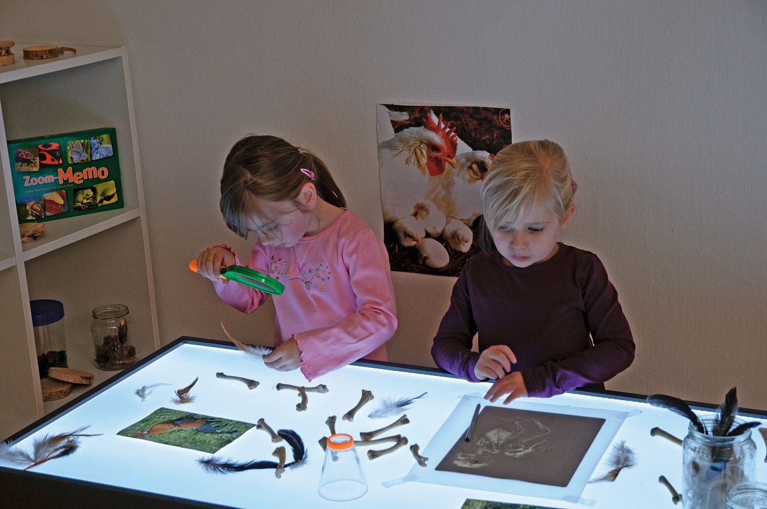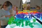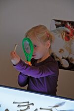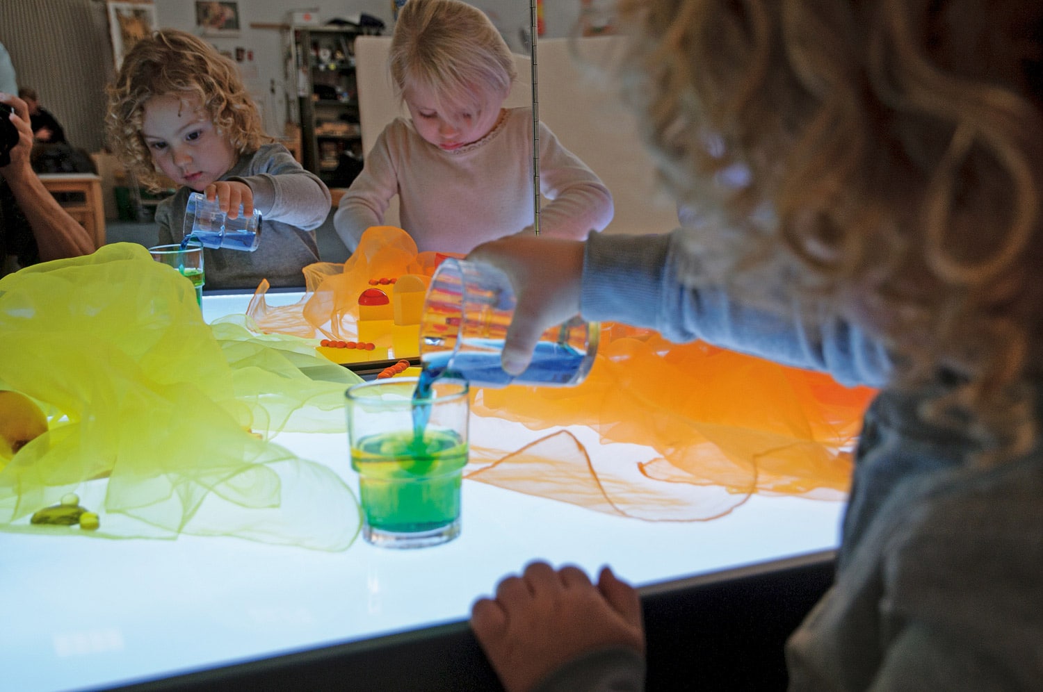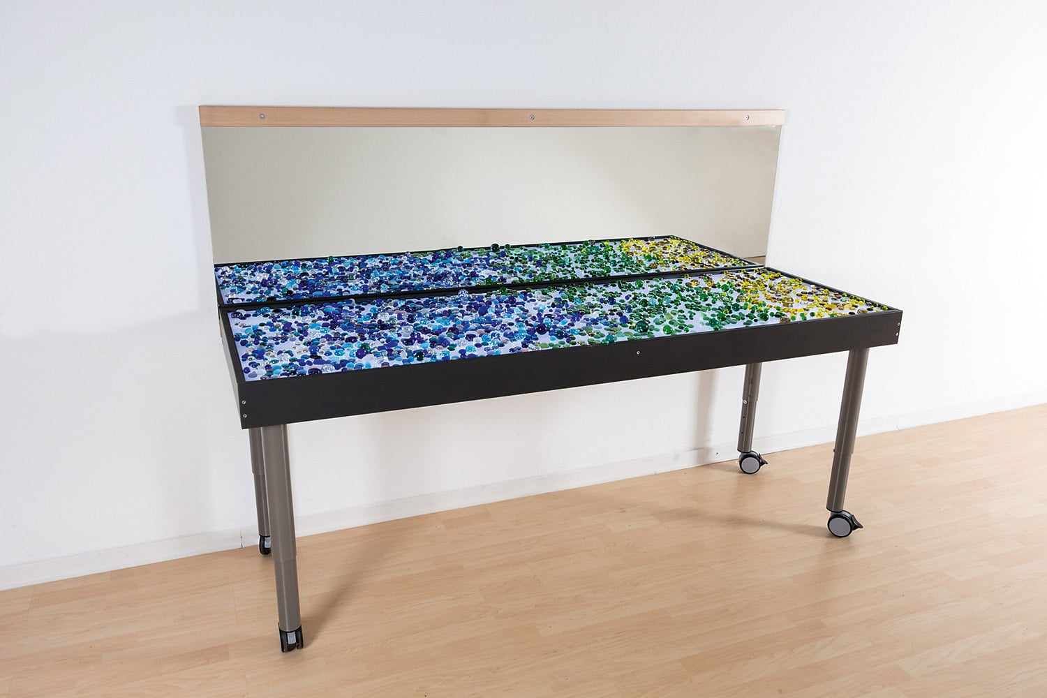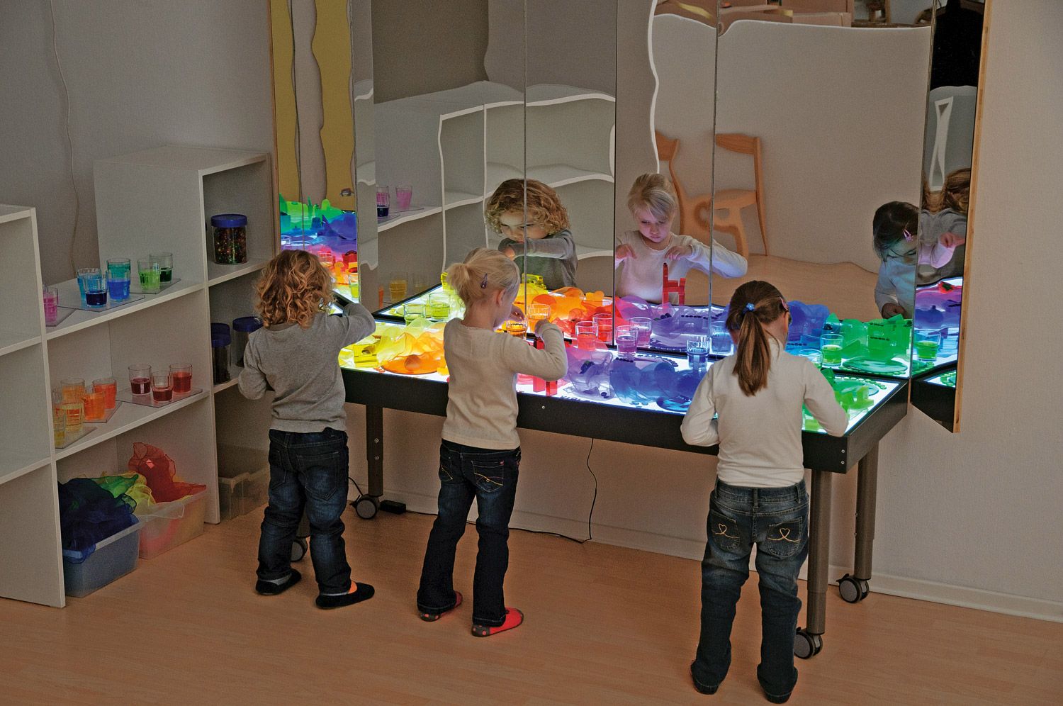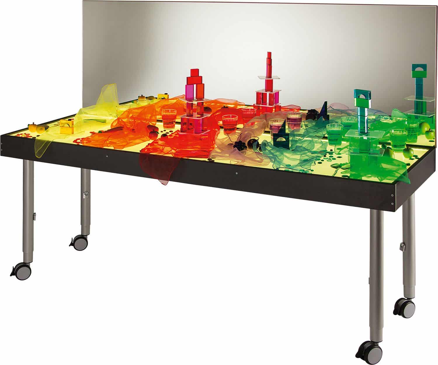 - Fördert Farbwahrnehmung und visuelle Exploration: Experimente mit transparenten Materialien, Folien oder Bildern werden unterstützt. Hier können erstaunliche Lichteffekte entstehen, die das Unsichtbare sichtbar machen.