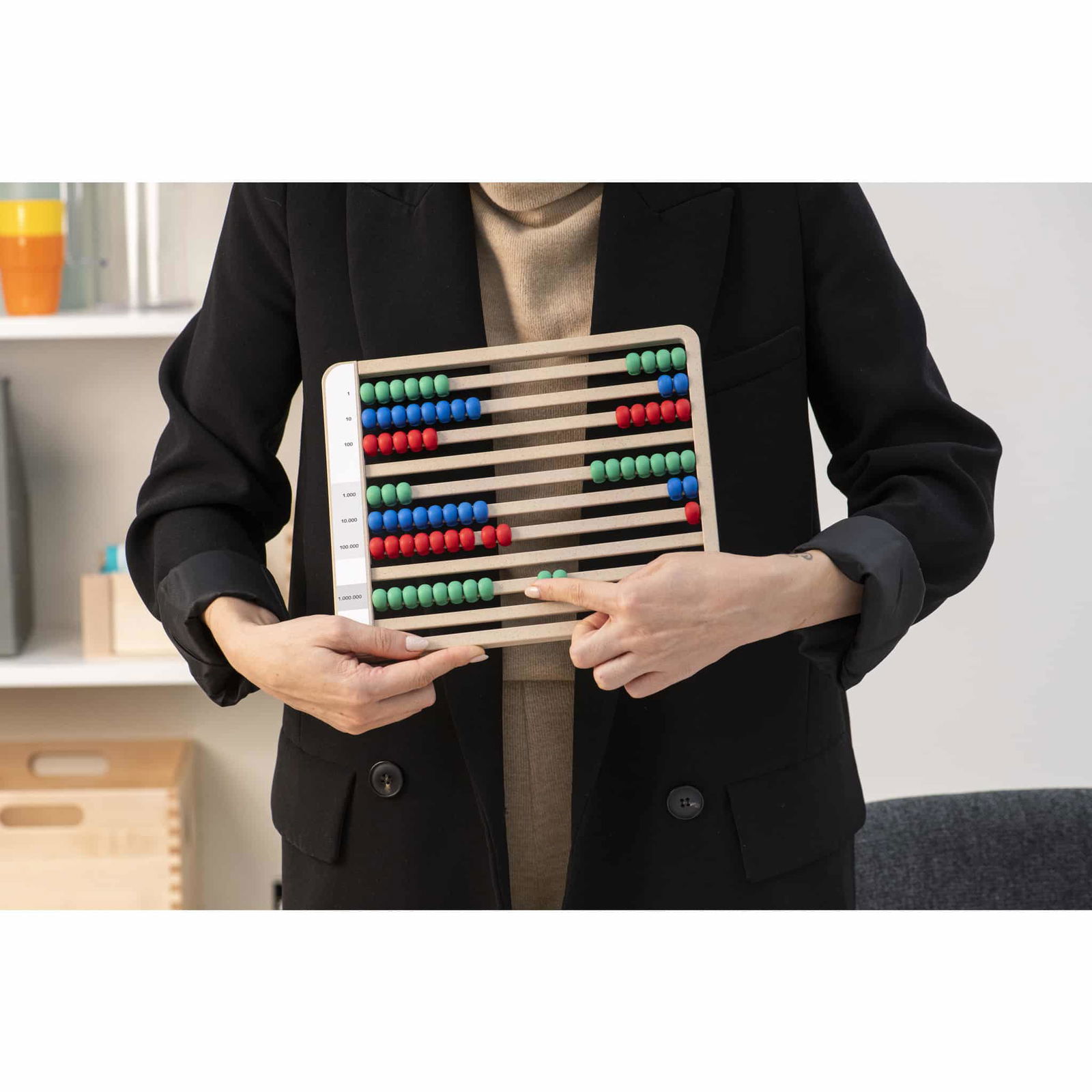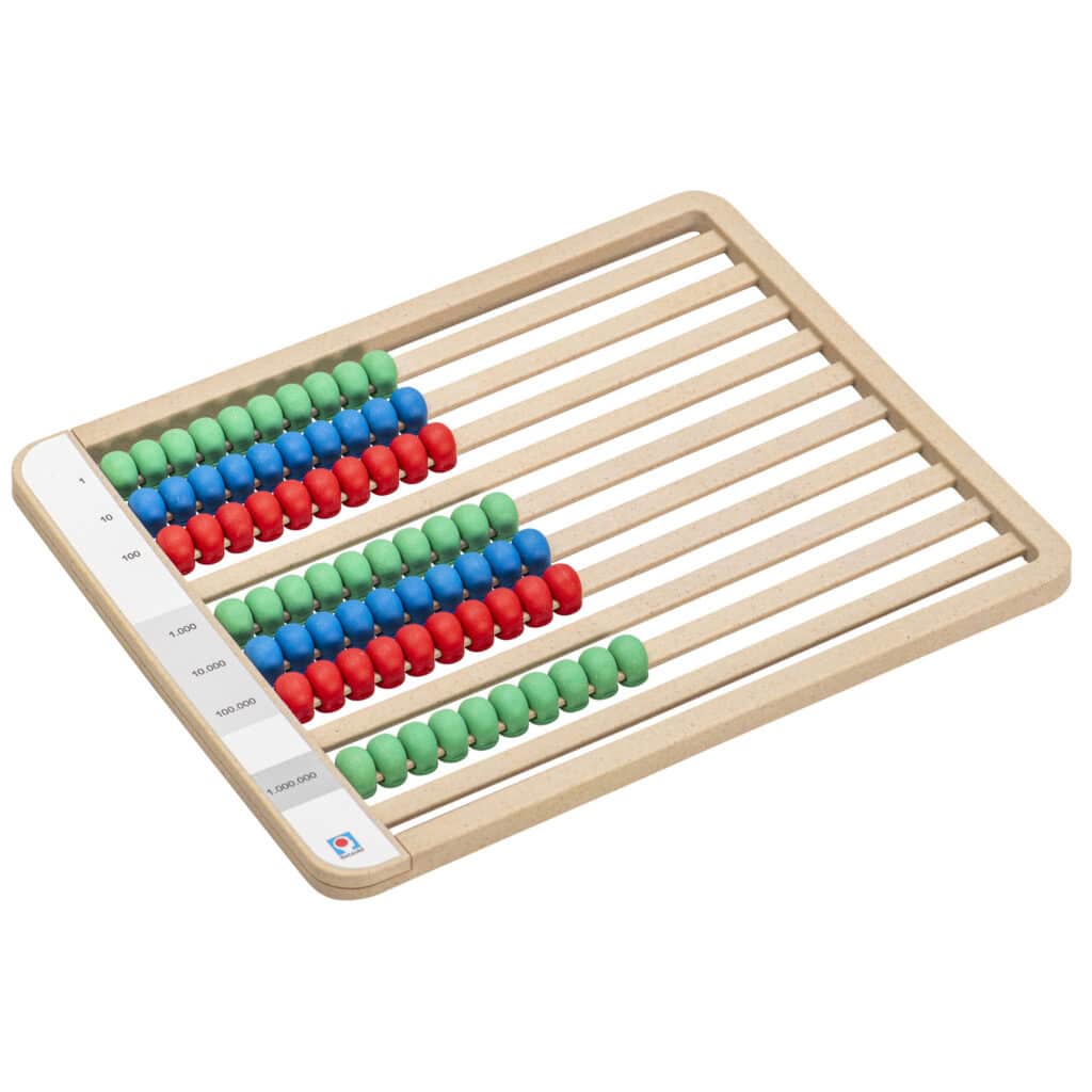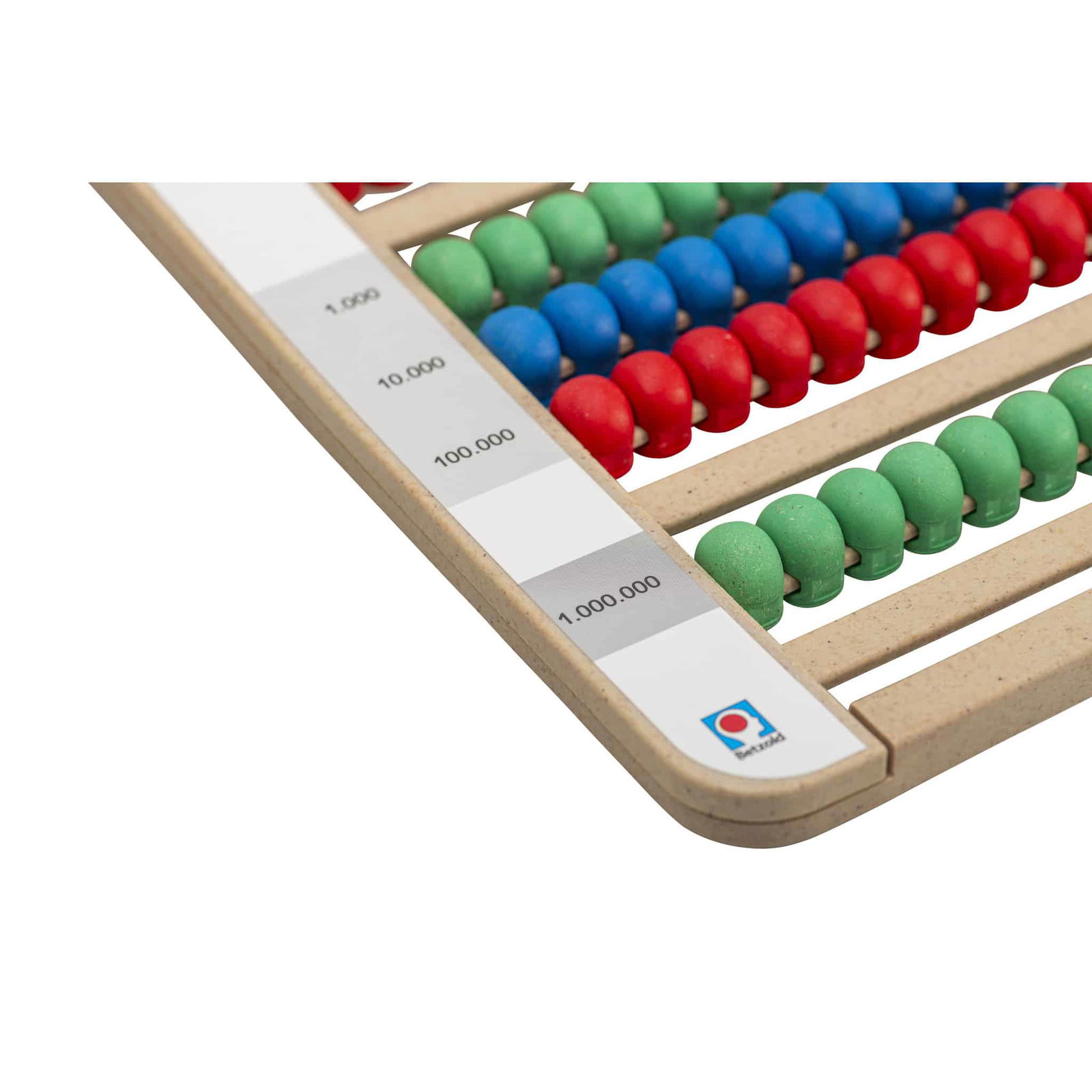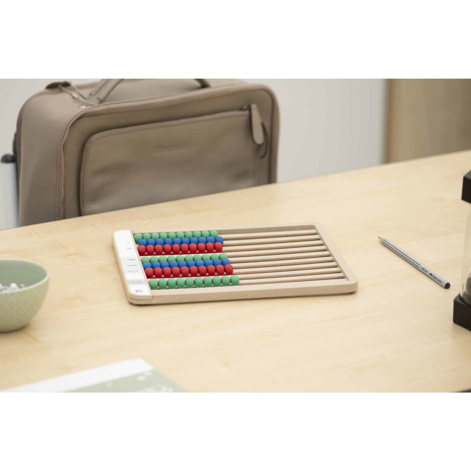 Die klaren Farben entsprechen dabei dem bekannten Montessori-System und ermöglichen es den Schülern, die Zusammenhänge zwischen den Zahlen besser zu erkennen. Durch das Manipulieren an den griffigen Kugeln wird nicht nur das Zahlenverständnis gefördert, sondern auch die Feinmotorik spielerisch geschult.
