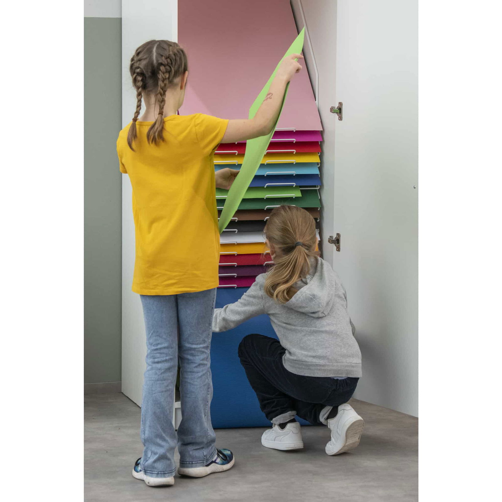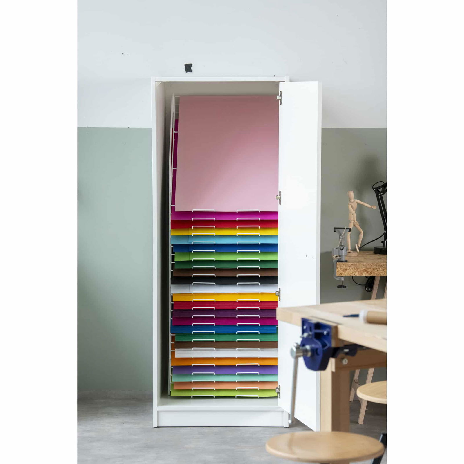 - Flexibler Einsatz: Perfekt für Klassenräume, Ateliers oder Gemeinschaftsräume – der Schrank hält mit jedem kreativen Tempo Schritt.