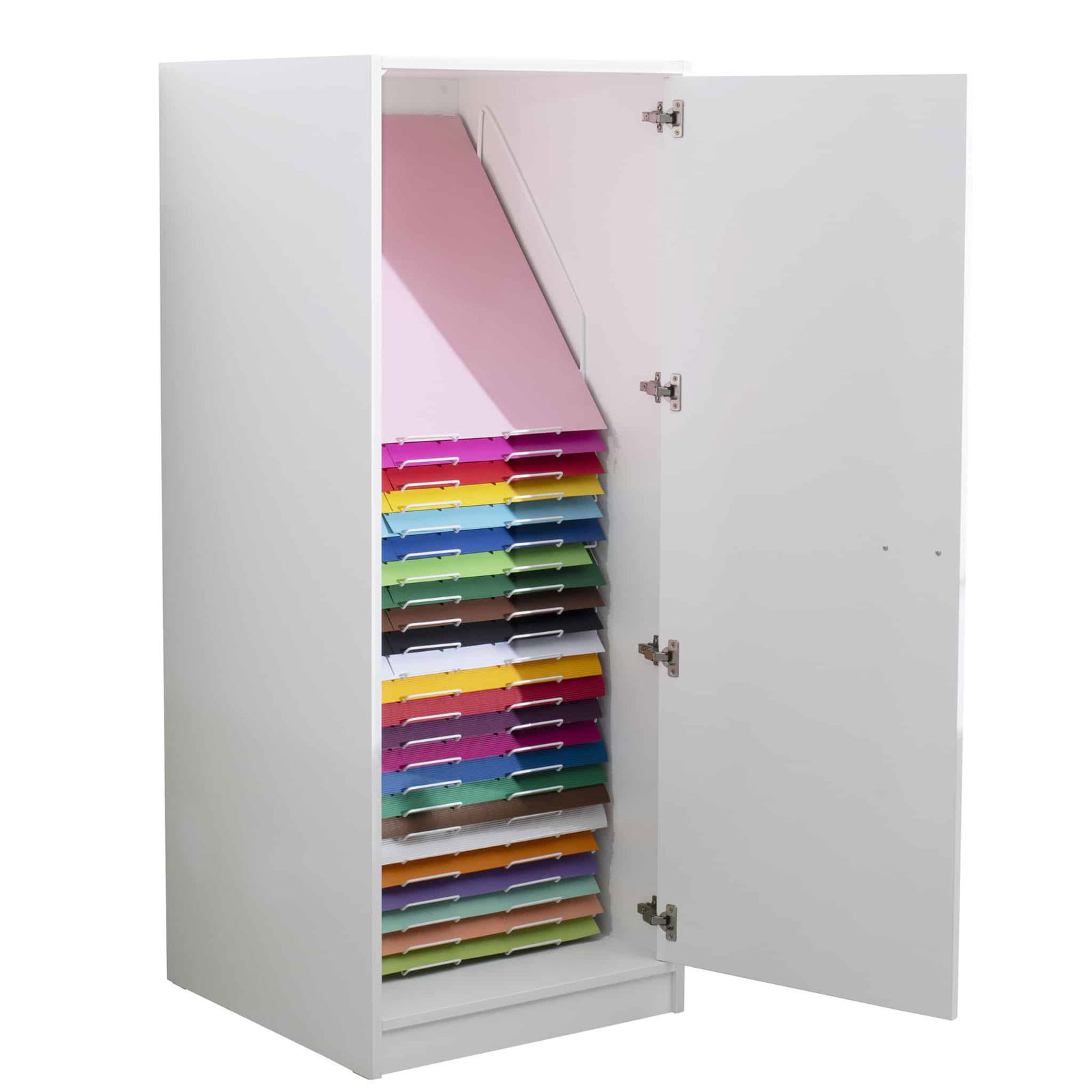 Der große Papierschrank mit 24 Fächern ist die perfekte Lösung, um Papier übersichtlich aufzubewahren und vor Staub und Verschmutzung zu schützen. Mit einer großzügigen Kapazität bietet der Schrank ausreichend Platz für Papierbogen bis zum Format 50 x 70 cm. Die durchdachte Fächereinteilung ermöglicht eine klare Trennung und schnelle Zugänglichkeit Ihrer Materialien. Egal, ob in kreativen Workshops, Schulen oder Kindergärten – der Papierschrank schafft Struktur und fördert effizientes Arbeiten.