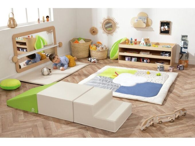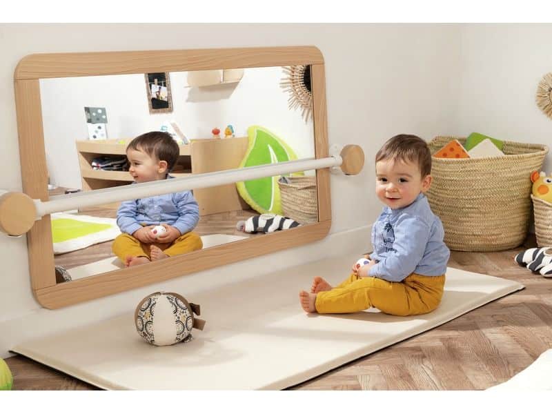 Verwandeln Sie Ihren Kindergarten oder Ihrer Kita in eine Welt voller Entdeckungen mit unserem großen Spiegel mit Haltestange! Hergestellt in Europa und ausgestattet mit einer 3-jährigen Garantie, bietet dieser Spiegel höchste Qualität und Langlebigkeit. Der Rahmen besteht aus lackiertem Sperrholz, der Spiegel aus stoßfestem Plexiglas und die Haltestange aus Metall mit Epoxidlackierung – eine robuste und sichere Alternative zu herkömmlichen Glasspiegeln.