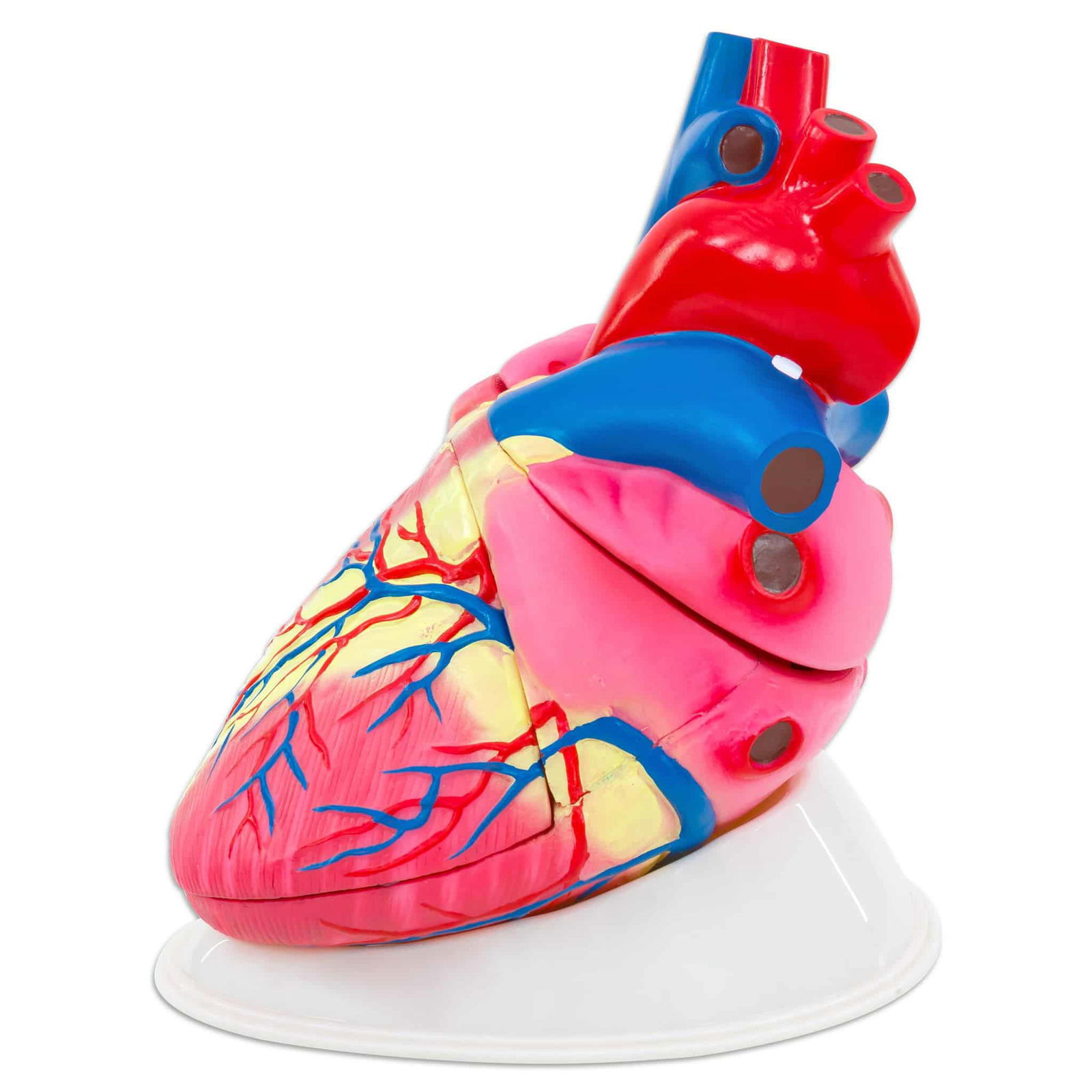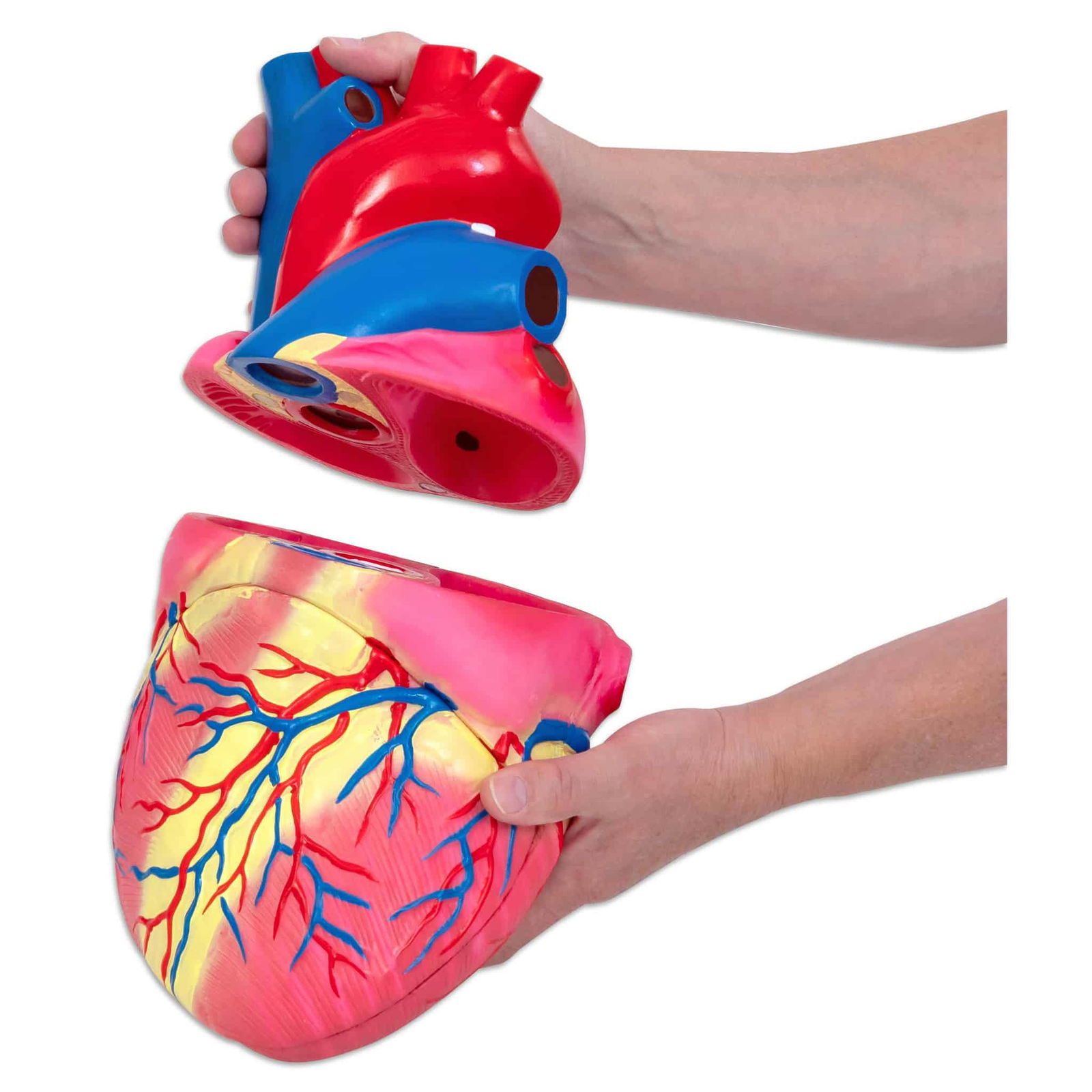 Das Modell ist in 3 Teile zerlegbar, was den Lernenden tiefe Einblicke in die inneren Strukturen des Herzens gewährt. Ihre Schülerinnen und Schüler werden schnell mit wichtigen Begriffen vertraut, wie Kammern, Vorhöfen, Aorta und den verschiedenen Arterien und Venen. Die Möglichkeit, die vordere Herzwand abzunehmen, erlaubt es den Kindern, die beiden Herzkammern zu betrachten. Zudem können die Schüler die Vorhöfe entdecken, indem sie das obere Teil des Modells abnehmen.