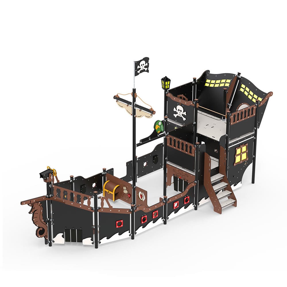 Außerdem gibt es auf allen Seiten der Kajüte große Fenster, damit die Erwachsenen die Kinder im Auge behalten können, ohne sie beim Spielen zu stören. Die Schiffe dieser Größe verfügen auch über einen großen Mast und einen Papagei, der dem Schiff den letzten Schliff verleiht.