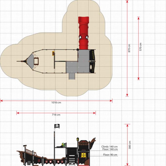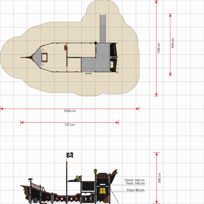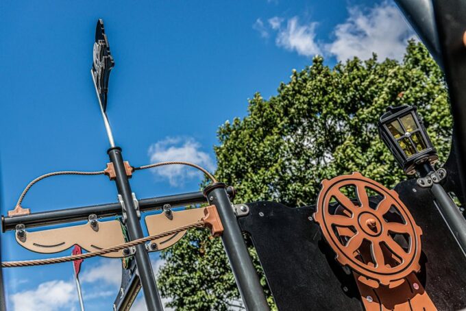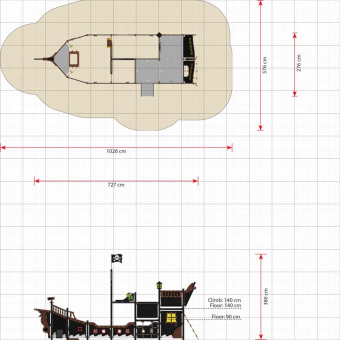 Die großen Piratenschiffe verfügen über zwei Achterdecks mit einer Höhe von 90 bzw. 140 cm. Auf diese Decks gelangen die Kinder wahlweise über eine Strickleiter oder Treppe und über eine Kletterwand. Bei einigen Modellen können sie zusätzlich auch das große Kletternetz am Achterschiff verwenden. Das große Kletternetz ist bei Kindern besonders beliebt. Denn es macht nicht nur großen Spaß, das Netz zu erklimmen, es ist auch gut für die Gesundheit und Entwicklung. Durch das versetzte Bewegen von Armen und Beinen werden die Nervenbahnen zwischen den Gehirnhälften stimuliert. Je besser die beiden Gehirnhälften zusammenarbeiten, desto einfacher gestaltet sich das Lesen- und Schreibenlernen. Auf dem Oberdeck gibt es auch eine Laterne, die bei strahlendem Sonnenschein erleuchtet wird, wenn das Licht durch das stoßfeste Polycarbonat scheint.