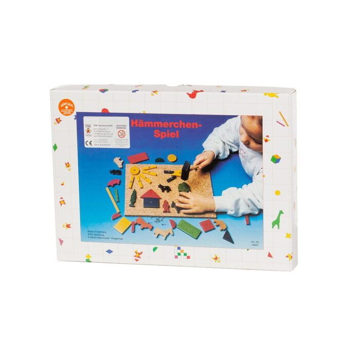 Für die kleinen Baumeister, denen Papas Werkzeugkasten noch nicht zugänglich ist, bieten wir das sichere und spielerische Hämmerchen-Spiel. Mit einem kinderfreundlichen Holzhämmerchen und einer Auswahl an bunt polierten Nageltafeln und -figuren können die Kleinen ihr handwerkliches Geschick auf spielerische Weise entwickeln. Kreatives Gestalten wird mit unserem bunten Mix aus verschiedenen Figuren und Formen zur großen Freude.