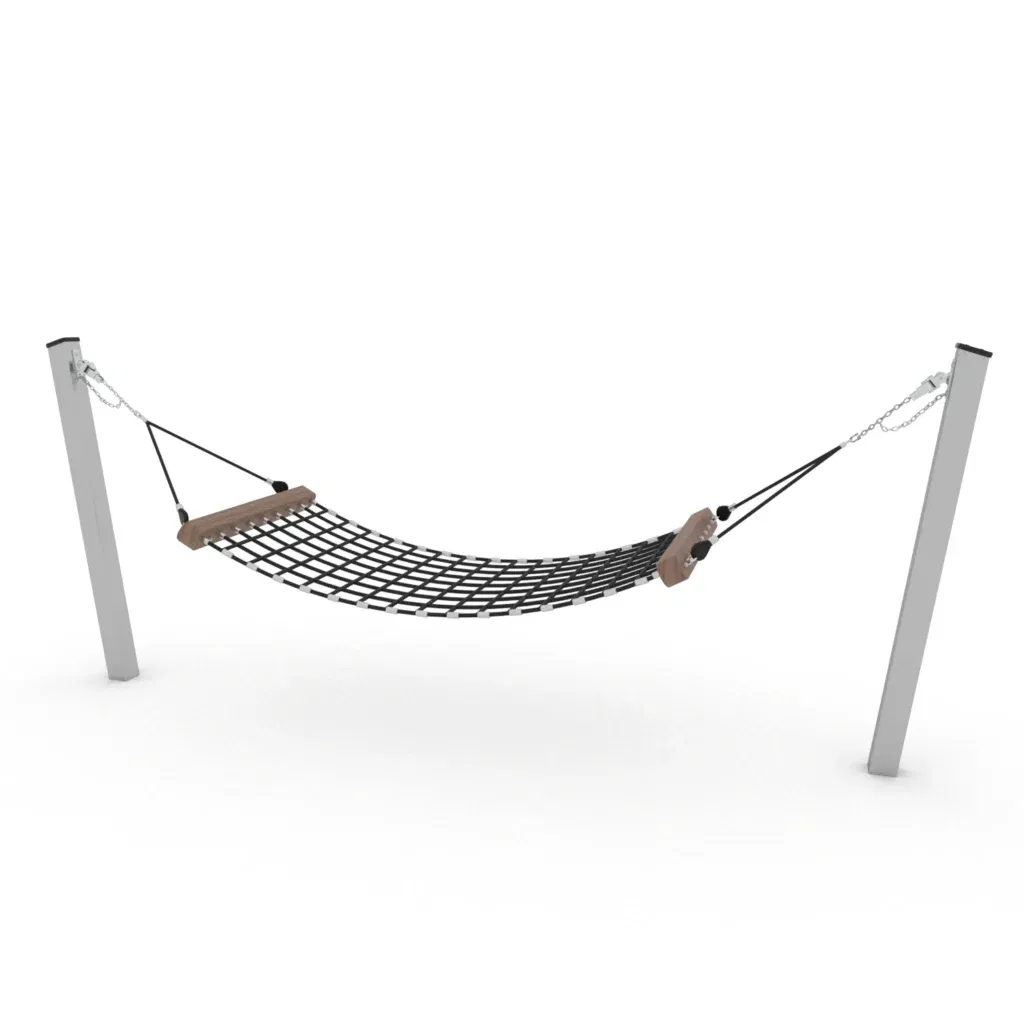 - Robuste und langlebige Materialien: Hergestellt aus einer stabilen Edelstahlkonstruktion mit einem Profil von 100 x 100 mm, ist diese Hängematte sowohl stark als auch langlebig. Die Verwendung von Stahlseilen aus Polypropylengeflecht und hochwertigen Holzelementen aus Lärchenholz sorgt für eine widerstandsfähige Konstruktion, die auch intensiven Spielstunden standhält.