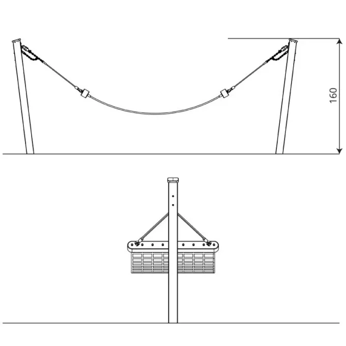 - Hängematte aus Stahlseilen mit Polypropylengeflecht,