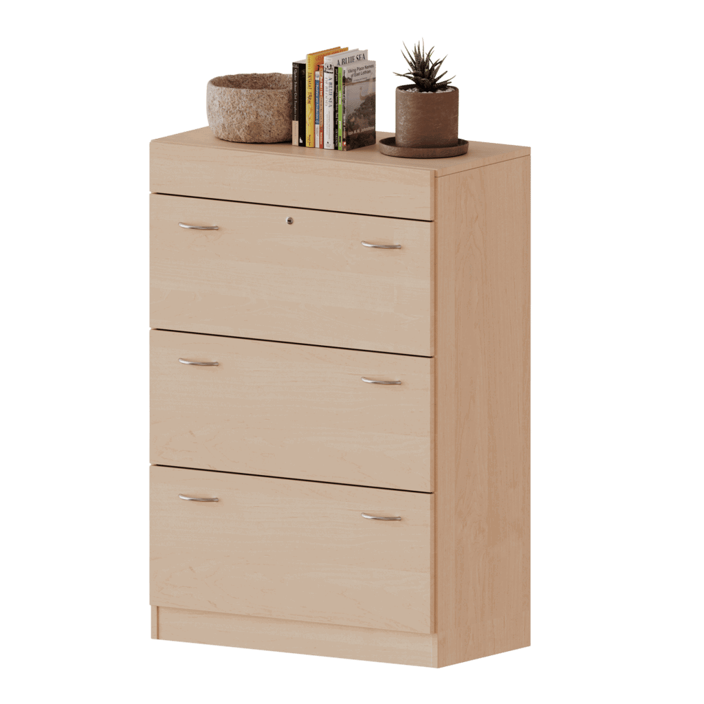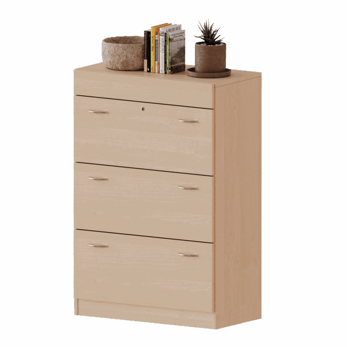- Enormer Stauraum: Trotz seiner kompakten Sideboard-Höhe bietet dieser Schrank mit drei doppelreihigen Hängeregister-Auszügen eine beeindruckende Kapazität. Er ist darauf ausgelegt, eine große Menge an Akten im DIN A4 Format systematisch und platzsparend zu organisieren – ideal für jedes professionelle Umfeld.