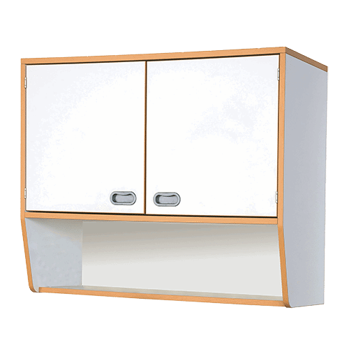 - Besonderheiten: Platzsparende Wandmontage, stark abgerundete Außenecken, höhenverstellbare Einlegeböden