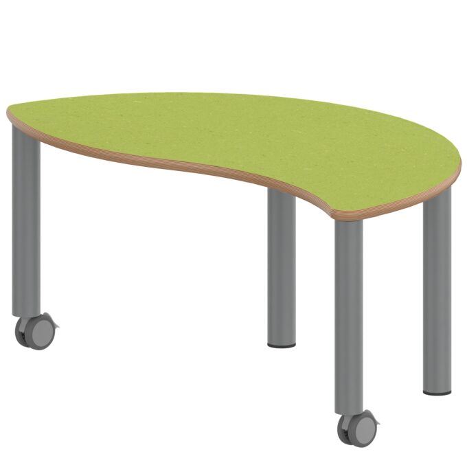 Halbrund-Wellentisch ZALOTTI 120×60 cm fahrbar mit Linoleum – Mobile Innovation für organische Arbeitsräume