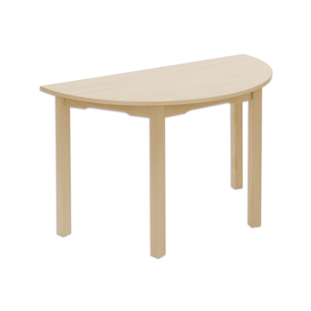 Der Halbrundtisch ist aus robustem Buche-Massivholz gefertigt und überzeugt durch seine kratz- und schlagfeste Oberfläche. Die farblose Lackierung, geprüft nach EN 71, sorgt dafür, dass der Tisch auch bei intensivem Gebrauch lange schön bleibt. Die melaminbeschichtete Spanplatte bietet zusätzliche Langlebigkeit und ist leicht mit herkömmlichen Reinigungsmitteln zu reinigen – praktisch für den Schulalltag!