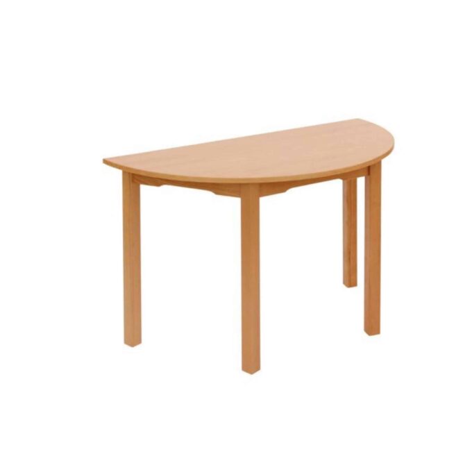 Der Halbrundtisch ist aus robustem Buche-Massivholz gefertigt und überzeugt durch seine kratz- und schlagfeste Oberfläche. Die farblose Lackierung, geprüft nach EN 71, sorgt dafür, dass der Tisch auch bei intensivem Gebrauch lange schön bleibt. Die melaminbeschichtete Spanplatte bietet zusätzliche Langlebigkeit und ist leicht mit herkömmlichen Reinigungsmitteln zu reinigen – praktisch für den Schulalltag!