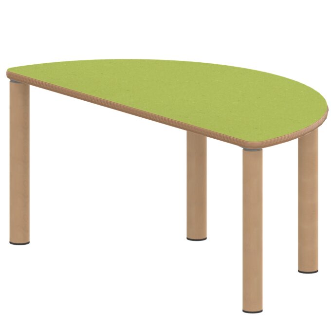 Der Halbrundtisch ZALOTTI 120×60 cm mit Linoleum-Belag und Massivholzbeinen definiert moderne Arbeits- und Lernräume durch seine einzigartige Verbindung von platzsparender Geometrie und natürlicher Ausstrahlung neu. Diese außergewöhnliche zargenlose Tischkonstruktion mit 2,5 mm starkem, geräuschdämmendem Linoleum-Belag und robusten Buche-Massivholzbeinen schafft die ideale Atmosphäre für ergonomisches Arbeiten und natürliche Kommunikation. Die halbrunde Form mit 120×60 cm Grundfläche ermöglicht optimale Raumnutzung bei gleichzeitig komfortablem Arbeitsplatz für individuelle oder kleine Gruppenaktivitäten. Die zargenlose Bauweise bietet ungehinderte Beinfreiheit für alle Nutzer – auch für Rollstuhlfahrer. Mit acht verfügbaren Höhen von 25 bis 76 cm wächst dieser „Made in Germany“ Qualitätstisch flexibel mit den Anforderungen mit und schafft durch seine natürliche Holz-Linoleum-Kombination eine warme, einladende Arbeitsatmosphäre für kreatives Lernen, konzentrierte Einzelarbeit oder flexible Teamaktivitäten.