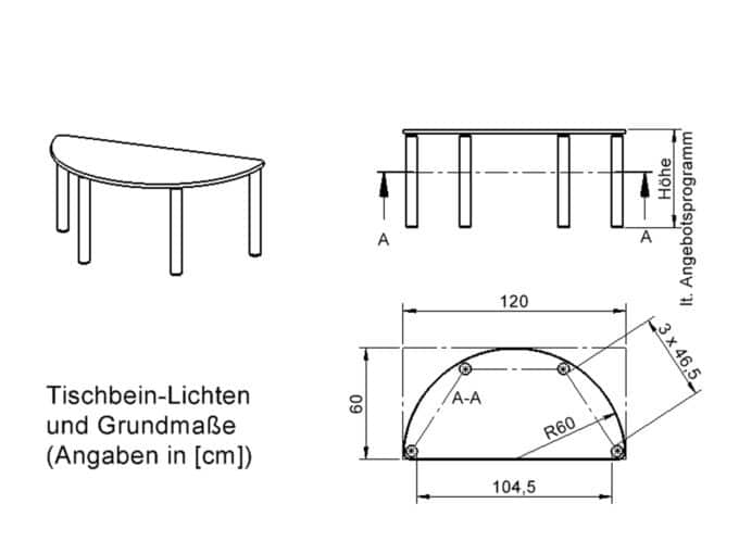 Vorteile des höhenverstellbaren Halbrundtisch ZALOTTI 120×60 cm mit Schichtstoff