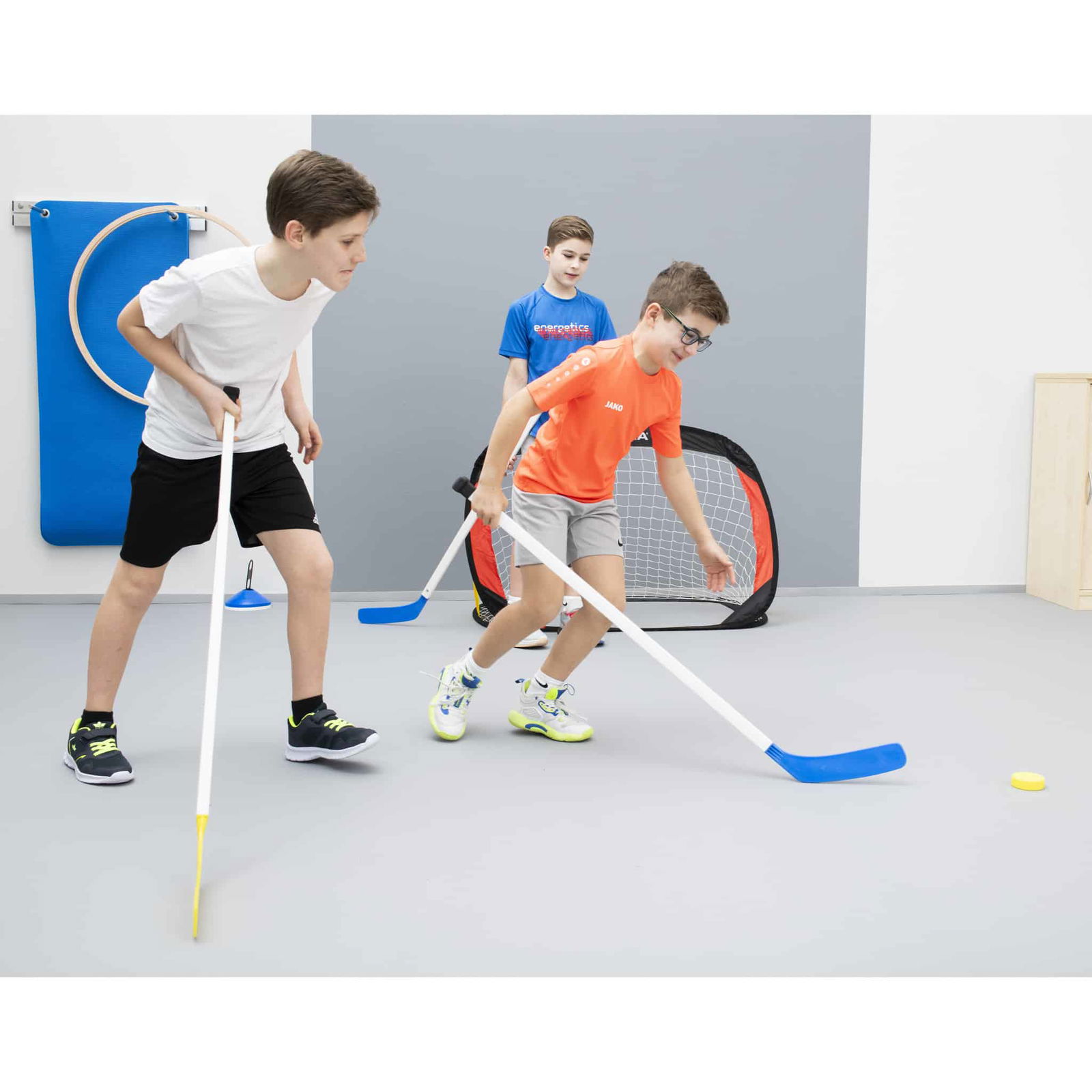 - Hockey ist ein Mannschaftssport, der Koordination, Schnelligkeit und strategisches Denken fördert. Dieses Set eignet sich hervorragend, um Schüler in Bewegung zu bringen und dabei gleichzeitig sozialen Austausch und Teamwork zu entwickeln.