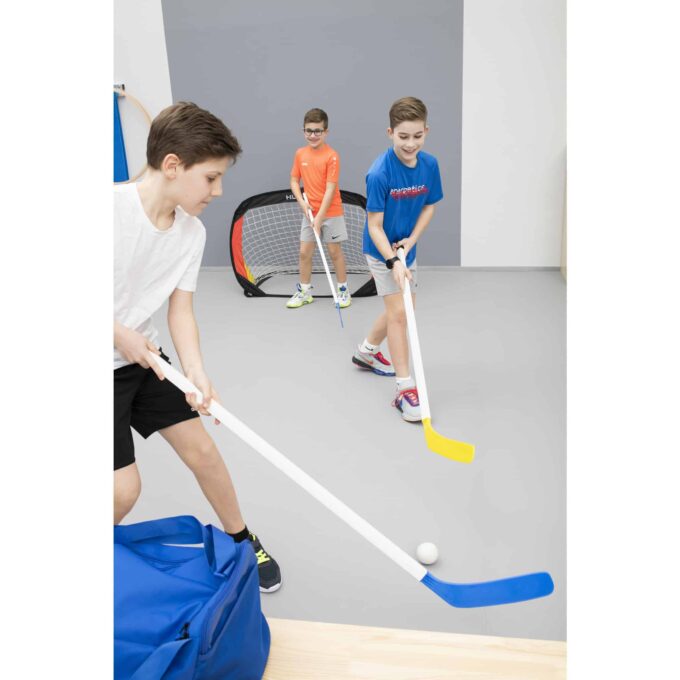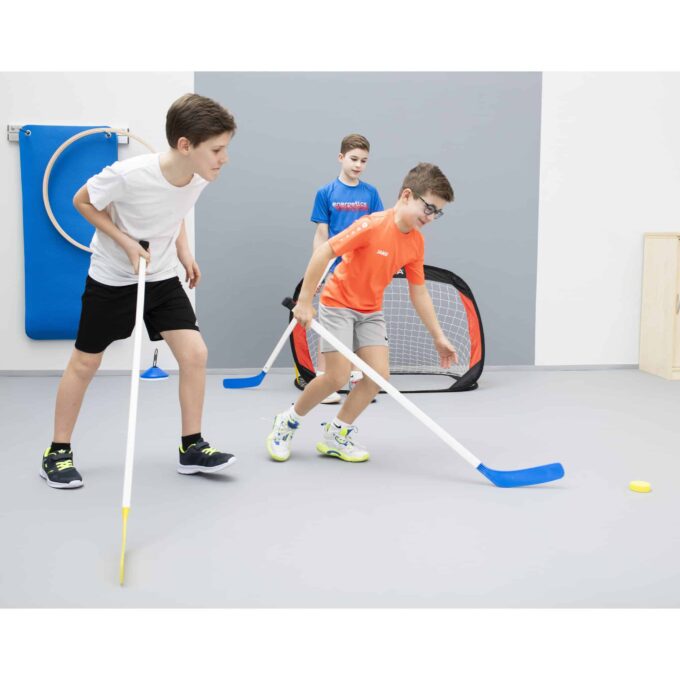 - Hockey ist ein Mannschaftssport, der Koordination, Schnelligkeit und strategisches Denken fördert. Dieses Set eignet sich hervorragend, um Schüler in Bewegung zu bringen und dabei gleichzeitig sozialen Austausch und Teamwork zu entwickeln.