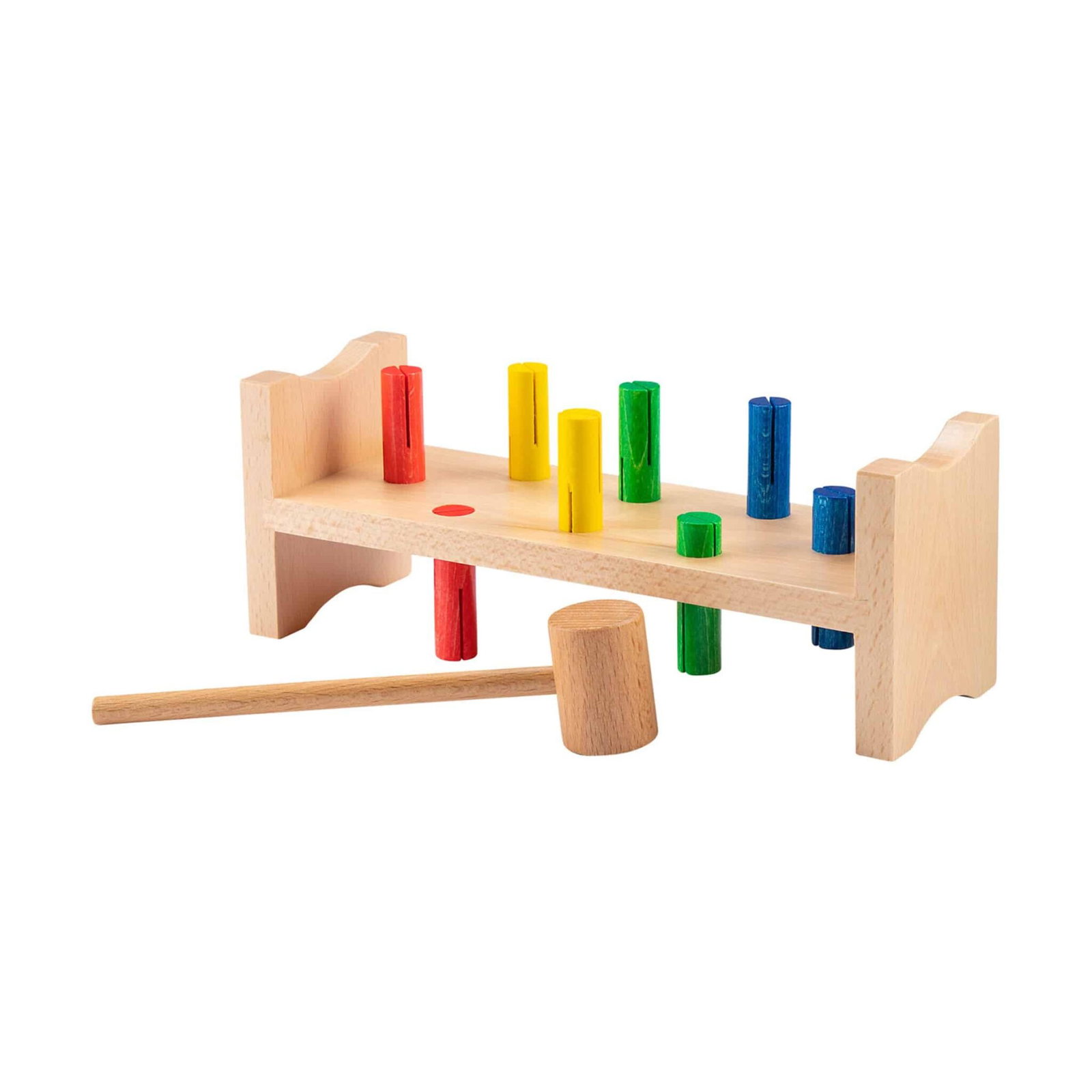 - Gezieltes Hämmern lernen: Das Spielzeug erfordert präzisen Einsatz des Hammers und verbessert so die Feinmotorik.
