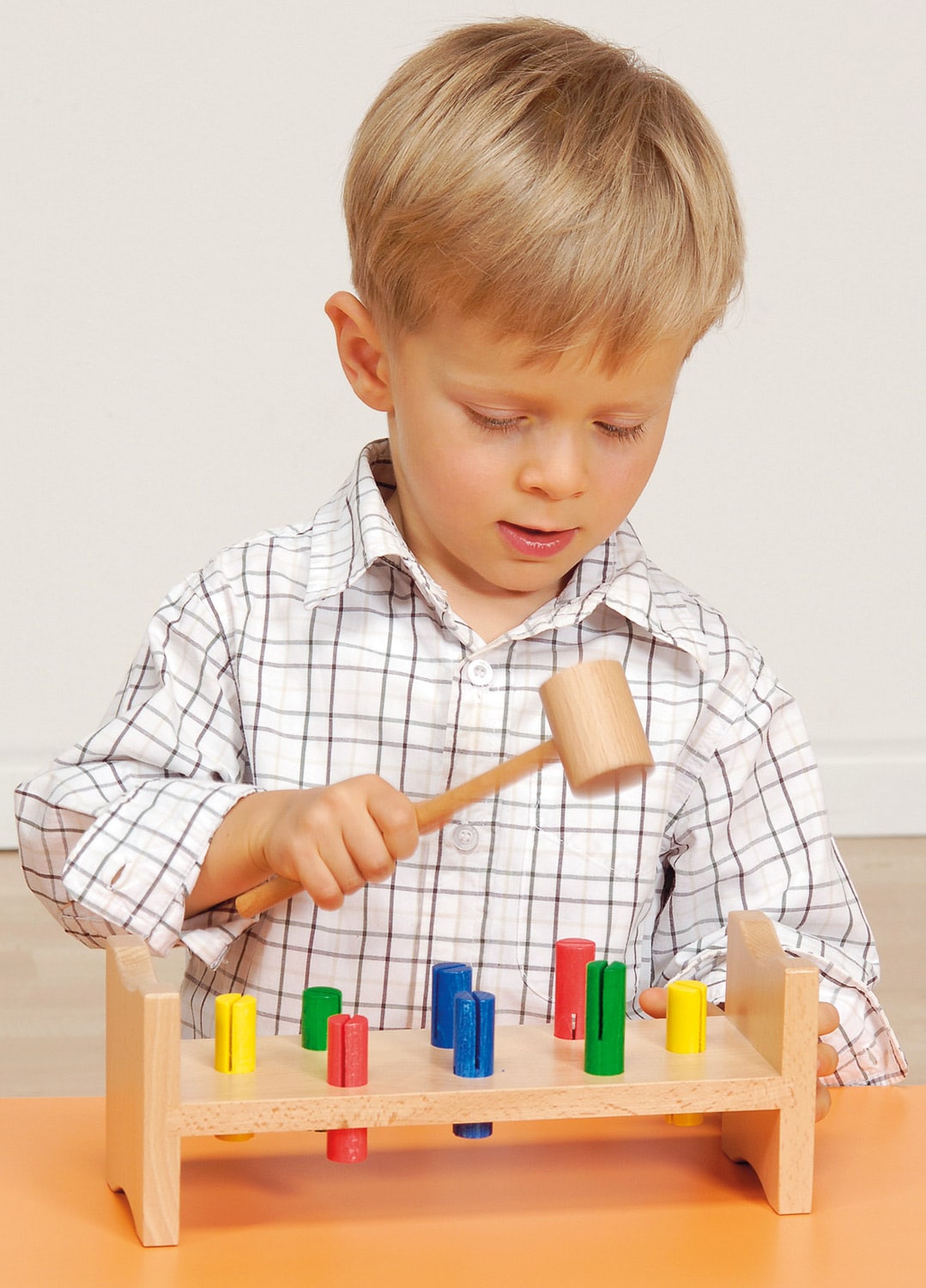 - Förderung der Grobmotorik: Die rhythmische Schlagbewegung mit dem Hammer entwickelt spielerisch motorische Fähigkeiten.