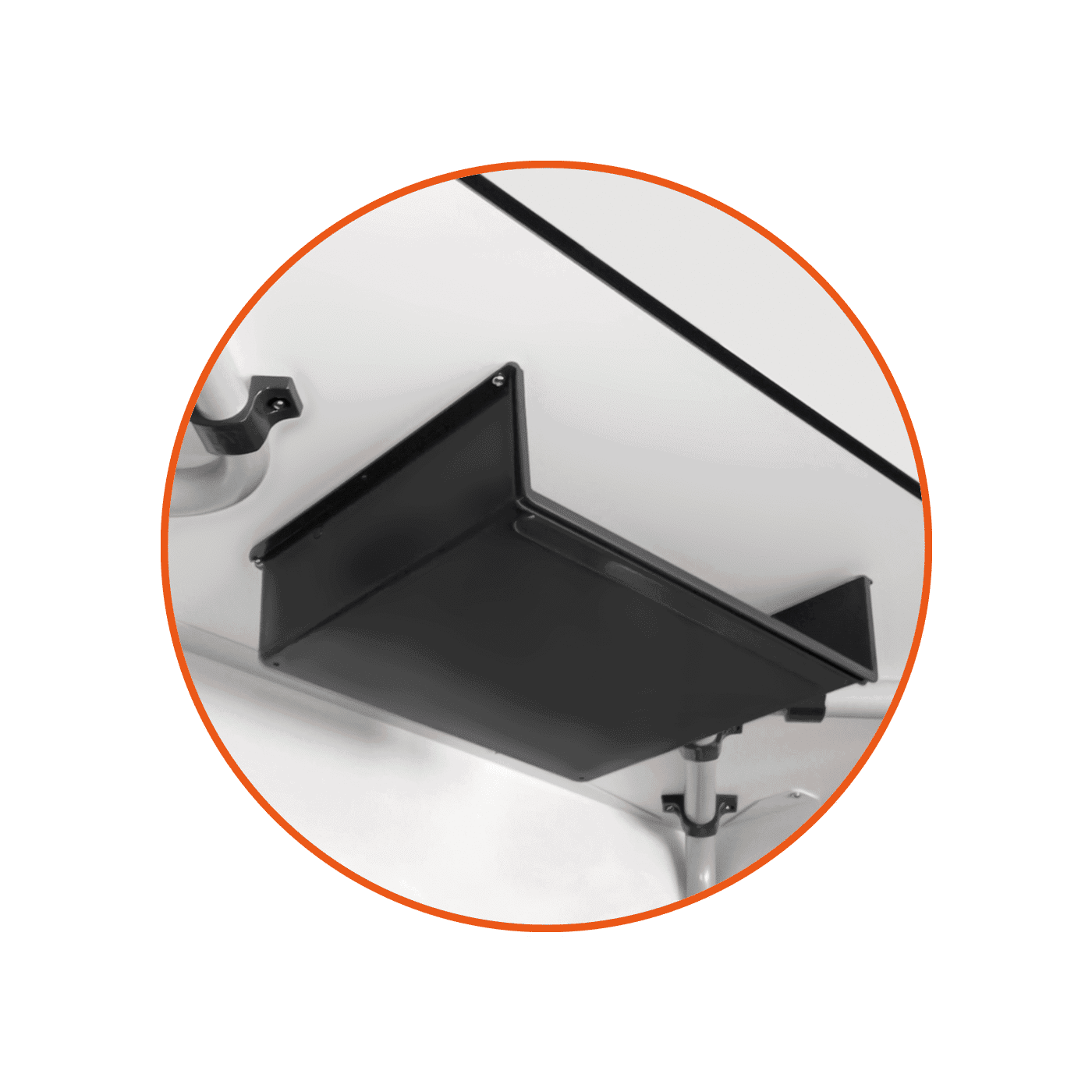 Um auf unebenen Böden stabil zu bleiben, ist der Tisch mit Höhenausgleichsschrauben ausgestattet, die eine optimale Anpassung ermöglichen.