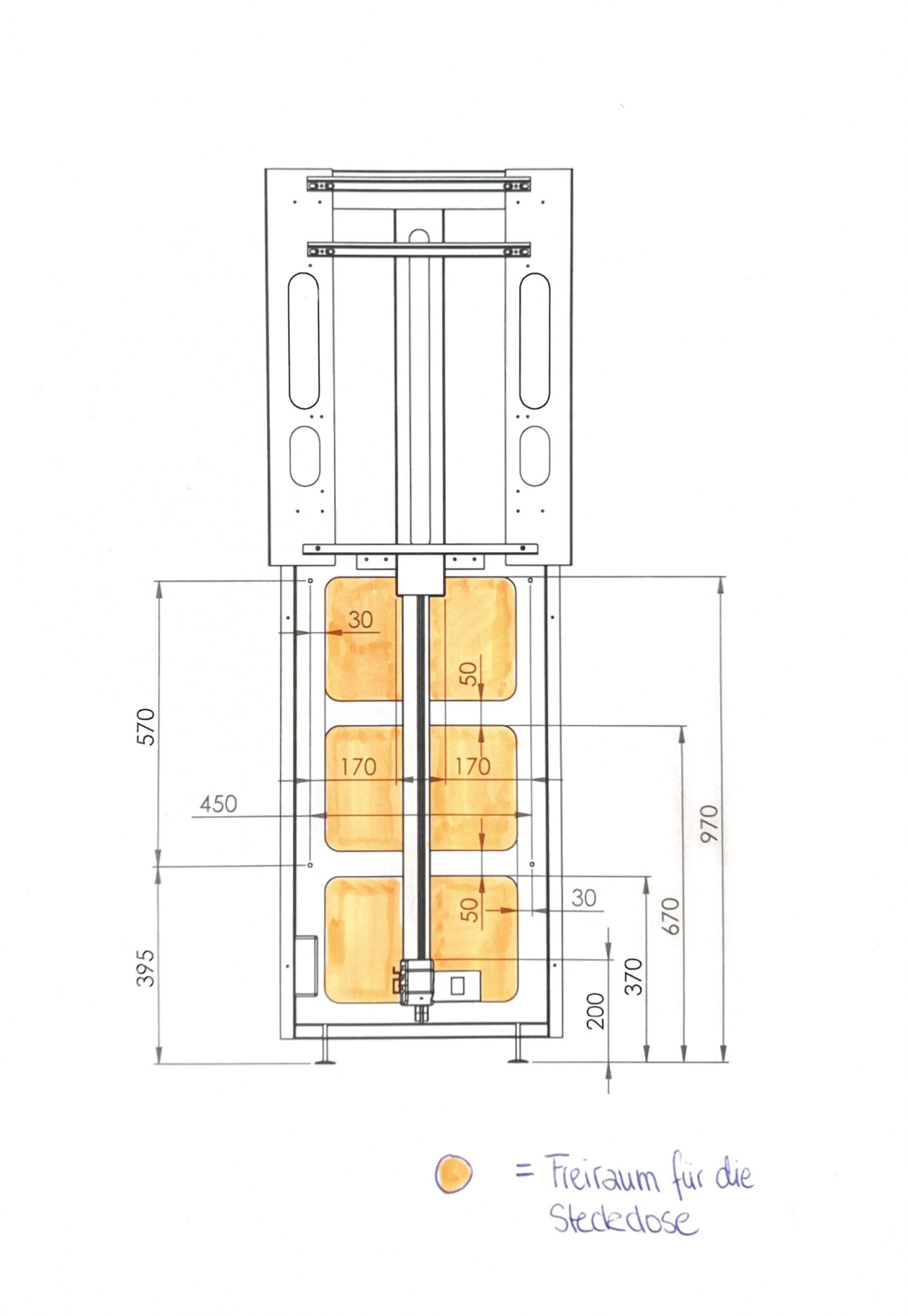- Lieferumfang: Lift, kabelgebundene Fernbedienung, 3-teilige Abdeckhaube, Wandschiene