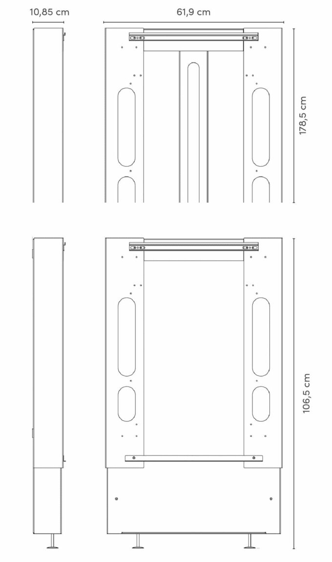 Der Lift hiiwi benötigt nur eine freie, stabile Wand zur Befestigung. Durch die Tiefe von 11 cm benötigt die Hubgruppe nur wenig Raumtiefe. Die Anlieferung erfolgt bereits vormontiert. Die Hubeinheit muss lediglich mit vier Dübeln und passenden Schrauben an der Wand befestigt werden. Danach wird die Haube auf die Hubeinheit geschraubt. Abschließend wird wie gewohnt der Wickeltisch eingehängt und mit zwei Schrauben gesichert.