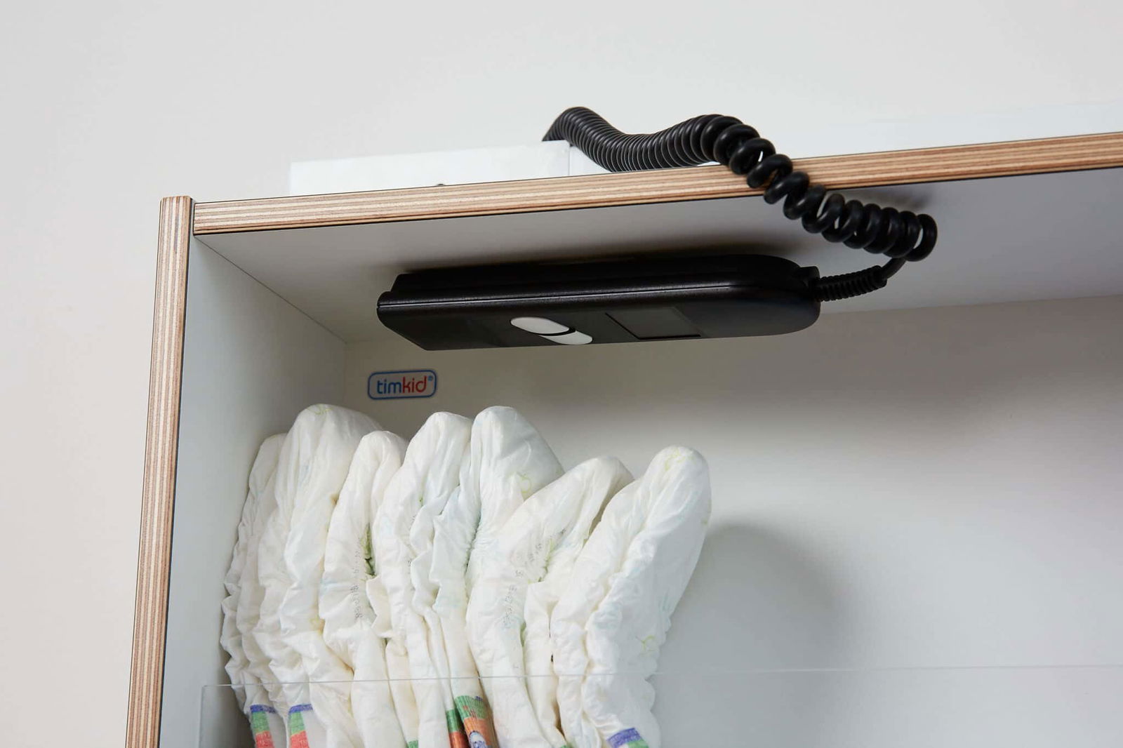 Mit dem CE-geprüften, elektrisch höhenverstellbaren Lift hiiwi können Wandwickeltische von timkid bequem in der Höhe verstellt werden. Das ermöglicht ein rückenschonendes Windelwechseln von Babys und Kleinkindern.