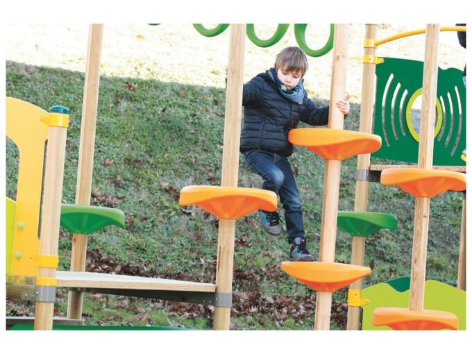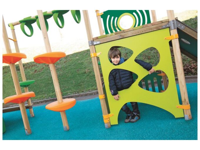 - Die Formteile (Garantie 2 Jahre) Unsere Formteile sind aus Polypropylen und Polyethylen mit hoher Dichte. Sie sind im Spritzgussverfahren hergestellt und garantieren eine hohe Sicherheit für das Kind und eine Langlebigkeit für die Holzstruktur.Kontaktieren Sie unsere Verkaufsabteilung für die Montage und für einen Fallschutzboden.