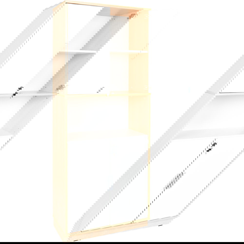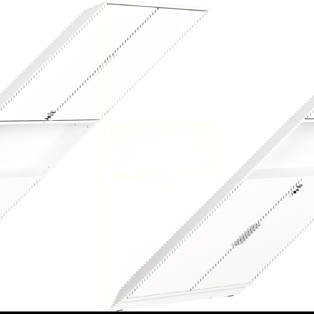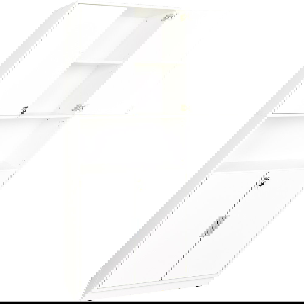Abschließbarer Hochschrank Quadro (201cm hoch) mit weißen Türen, 5 Ordnerfächern (4 zu, 1 offen) & ohne Mittelwand. Ideal für sichere Aufbewahrung im Büro & Kita.