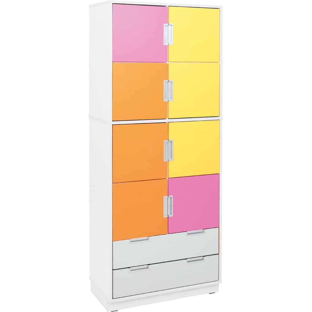Hochschrank mit Schubladen – B 79 cm, H 201 cm – Orange/Gelb/Magenta