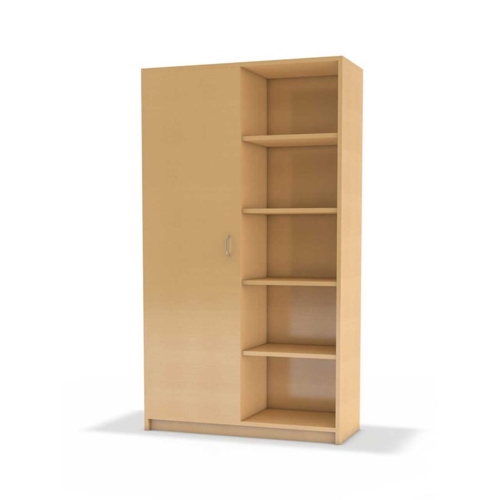 - Einlegeböden: Vier stabile Einlegeböden pro Schrankseite bieten großzügigen Stauraum für Bücher, Lehrmaterialien und persönliche Gegenstände