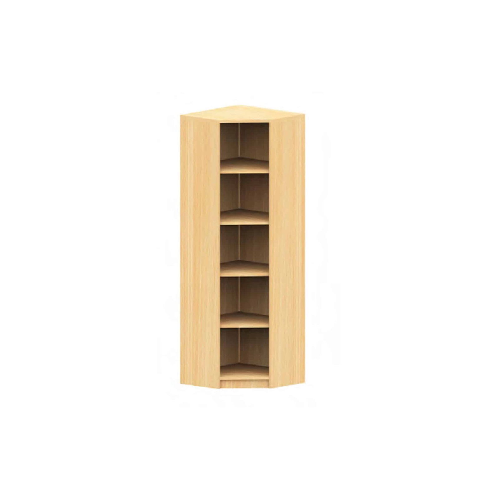 Gefertigt in hochwertiger Korpusbauweise und versehen mit einem dekorativen Buche-Dekor sowie passenden ABS-Kanten, fügt sich dieses Inneneckregal harmonisch in Ihre Räumlichkeiten ein. Die Sichtrückwand und der stabile Sockel sorgen für zusätzliche Stabilität und Langlebigkeit.