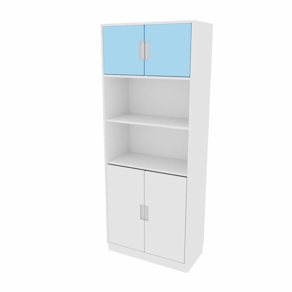 Hochschrank ohne Mittelwand – H 201 cm, mit offenem Fach – Hellblau/Weiß (Quadro 118-180°)