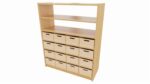 Optimieren Sie Ihre Aufbewahrungslösungen und schaffen Sie ideale Bedingungen für Lernen und Spielen mit dem Hochschrank ST unten: 16 Materialkästen, 3 feste Böden oben: Regal offen (ohne Rückwand), 1 Einlegeboden. Jetzt bestellen und Ihre Einrichtung perfekt ergänzen!