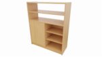 Der Hochschrank ST überzeugt durch seine durchdachte Aufteilung und hochwertige Verarbeitung. Der untere Bereich bietet reichlich geschützten Stauraum und flexible Organisationsmöglichkeiten, während das obere offene Regal zusätzlichen Platz für oft genutzte Materialien bietet. Hergestellt aus langlebigen Materialien, verspricht dieser Schrank hohe Strapazierfähigkeit und Langlebigkeit – ideal für den intensiven Einsatz im Kindergarten- und Schulalltag.
