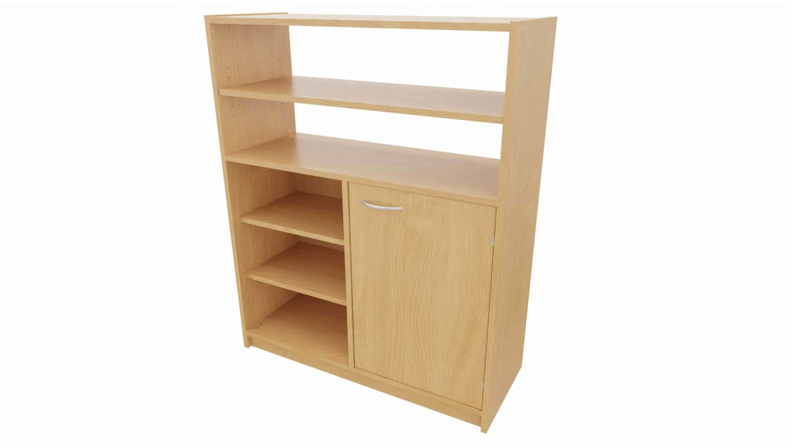 Optimieren Sie Ihre Aufbewahrungsmöglichkeiten mit dem flexiblen Hochschrank ST aus dem Schranksystem „Korpus-Classic“. Dieser vielseitige Hochschrank bietet unten eine Tür und ein Regal mit je zwei Einlegeböden auf beiden Seiten und oben ein offenes Regal ohne Rückwand mit einem Einlegeboden. Ideal für Kindergärten und Grundschulen, sorgt dieser Schrank für eine ordentliche und leicht zugängliche Aufbewahrungslösung für Lernmaterialien, Bücher und persönliche Gegenstände.