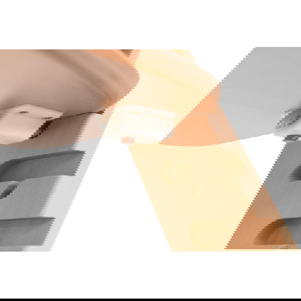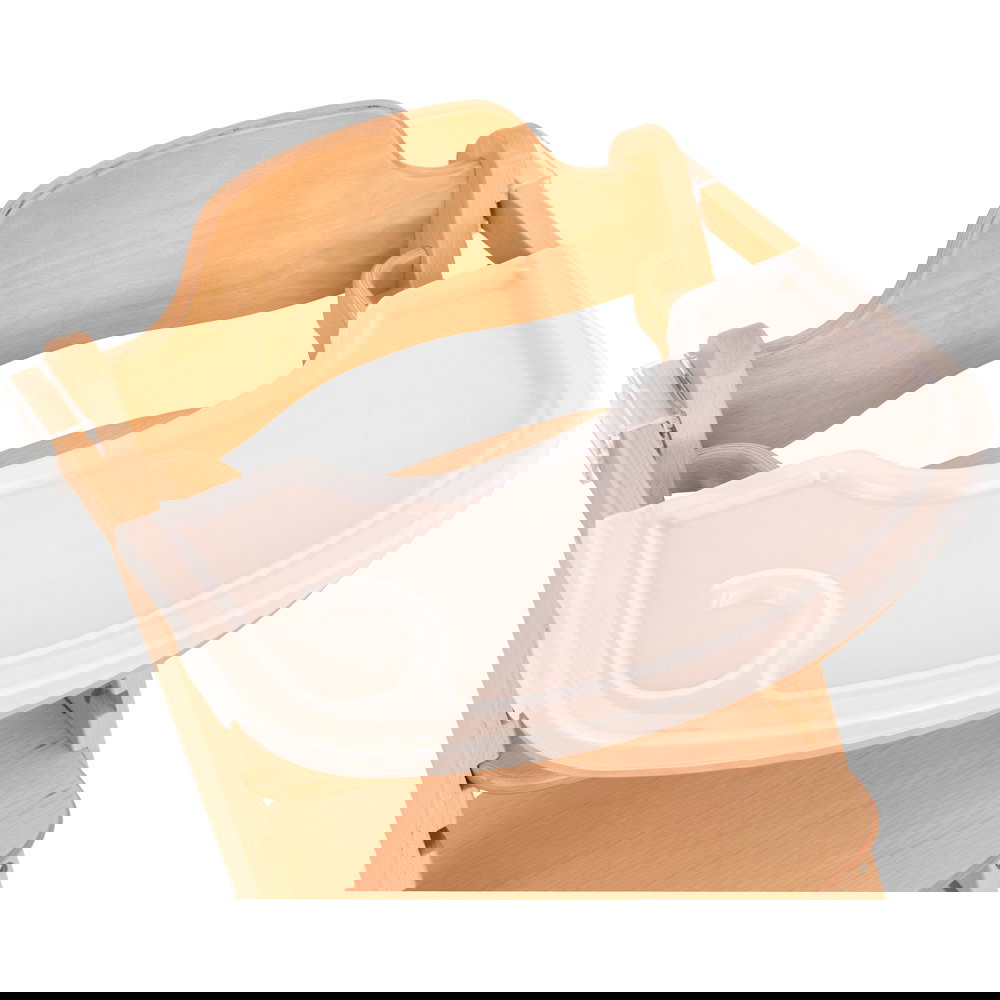 Der eigene kleine Tisch ist perfekt für die ersten Essversuche oder eine Malrunde zwischendurch. Die abnehmbare Holztischplatte verfügt über eine zusätzliche Kunststoffabdeckung. Diese lässt sich zum Reinigen einfach abnehmen und abwischen – so sind kleine Kleckereien schnell beseitigt. Wird der Tisch nicht mehr benötigt, kann er komplett entfernt werden, und Moritz rückt direkt an den großen Esstisch. - Natürlich und langlebig