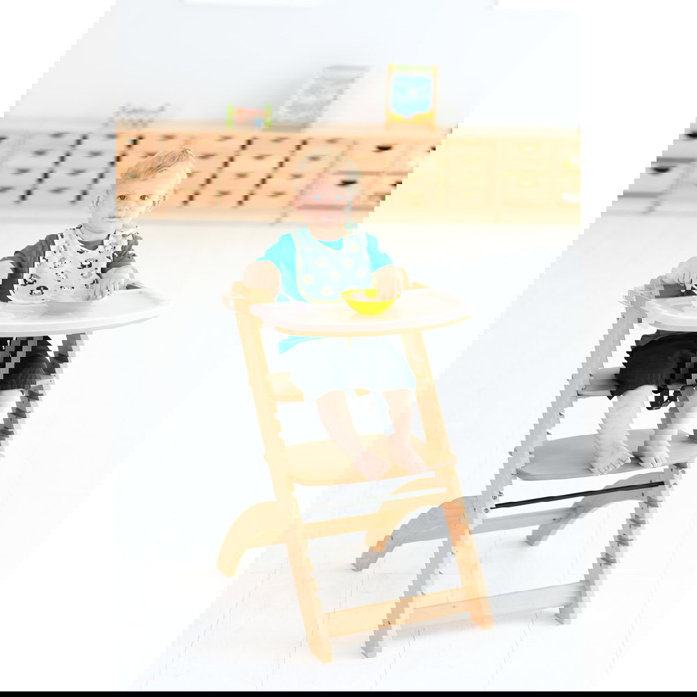 Mit seiner verstellbaren Sitzfläche und Fußstütze begleitet Moritz Ihr Kind über viele Jahre. Er bietet den Kleinsten ab sechs Monaten einen sicheren Platz am Familientisch und lässt sich später einfach in einen stabilen Stuhl für ältere Kinder verwandeln. Dank des abnehmbaren Tisches und des integrierten Gurtsystems ist er sowohl ein praktischer Ess- und Spielplatz als auch ein vollwertiger Stuhl, der die Teilnahme am gemeinsamen Familienleben fördert.