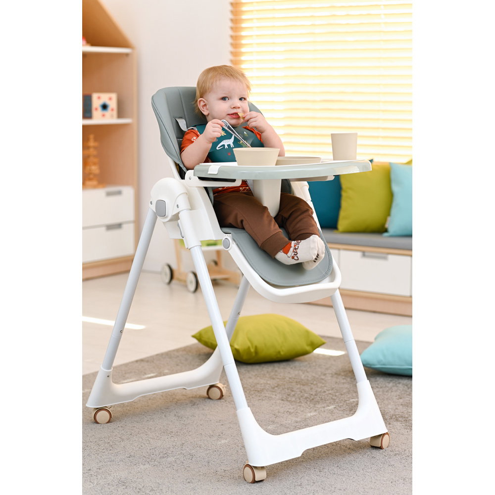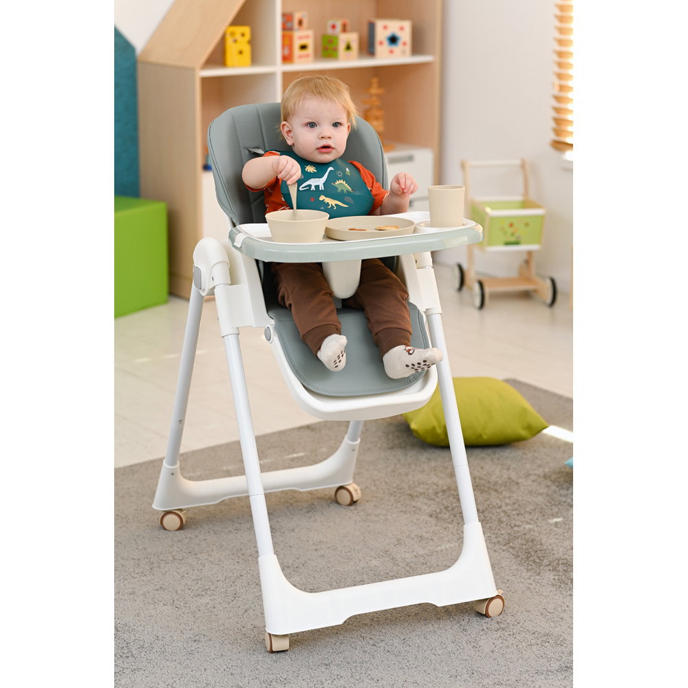 Das geräumige Esstablett (49 x 29 cm) bietet viel Platz für Teller, Becher und erstes Spielzeug. Die praktische, abnehmbare Auflage macht das Reinigen nach der „Essensschlacht“ zum Kinderspiel.