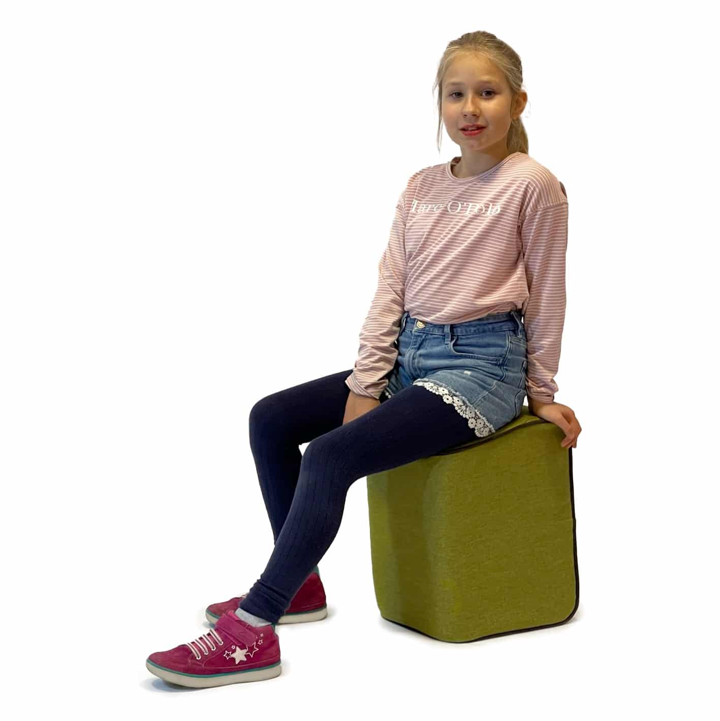 Dieser Hocker, der für das Arbeiten mit Kindern im U3-Bereich auf dem Boden eintwickelt wurde, eignet sich darüber hinaus für Besprechungen in der Gruppe, Kreisspiele, Wartebereiche etc. Man kann ihn in verschiedenen Sitzpositionen nutzen, u.a. auch aufrecht. Hohe Robustheit dank der verarbeiteten Materialien. Mittels der handlichen Griffschlaufe leicht durch den Raum zu ziehen oder zu tragen.