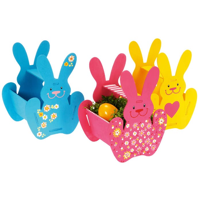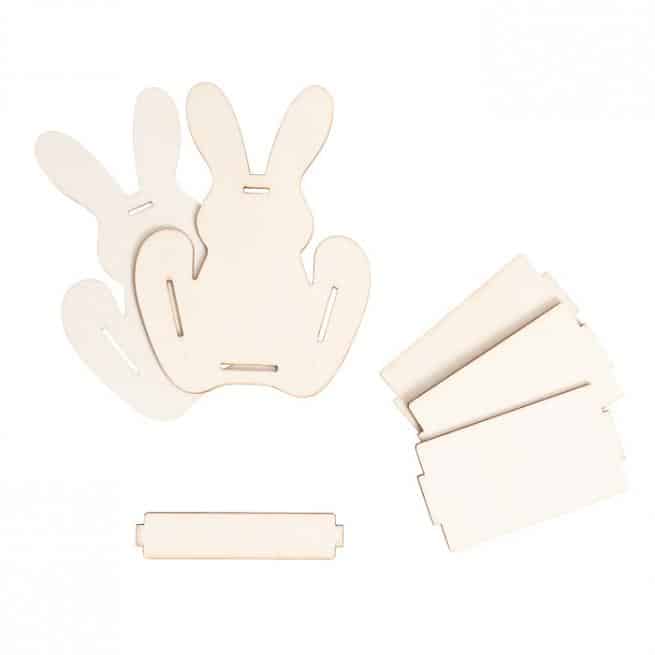 - Produktart: Holz-Bausatz „Hasenkörbchen“ 6er Set