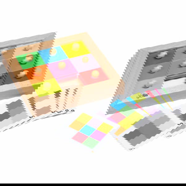 Das Holz-Schiebespiel besteht aus einem quadratischen Holzbrett, auf dem die acht verschiedenfarbigen Schiebepuzzleteile angeordnet werden. Die Herausforderung besteht darin, die Teile gemäß der ausgewählten Vorlagenkarte an die richtige Stelle zu schieben. Mit 6 Vorlagenkarten haben Kinder zahlreiche Möglichkeiten, ihre Fähigkeiten zu testen und sich an immer neuen Mustern zu erfreuen.