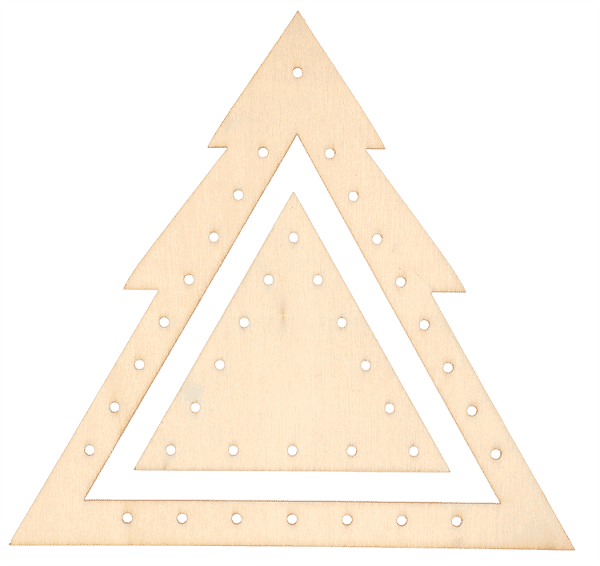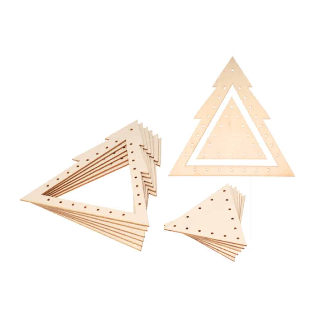 - 12 Fädeltannen aus Holz (je 6 große und 6 kleine Formen)