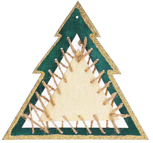 Holzanhänger „Tannenbaum zum Fädeln“ 6er Set – Kreativität zur Weihnachtszeit