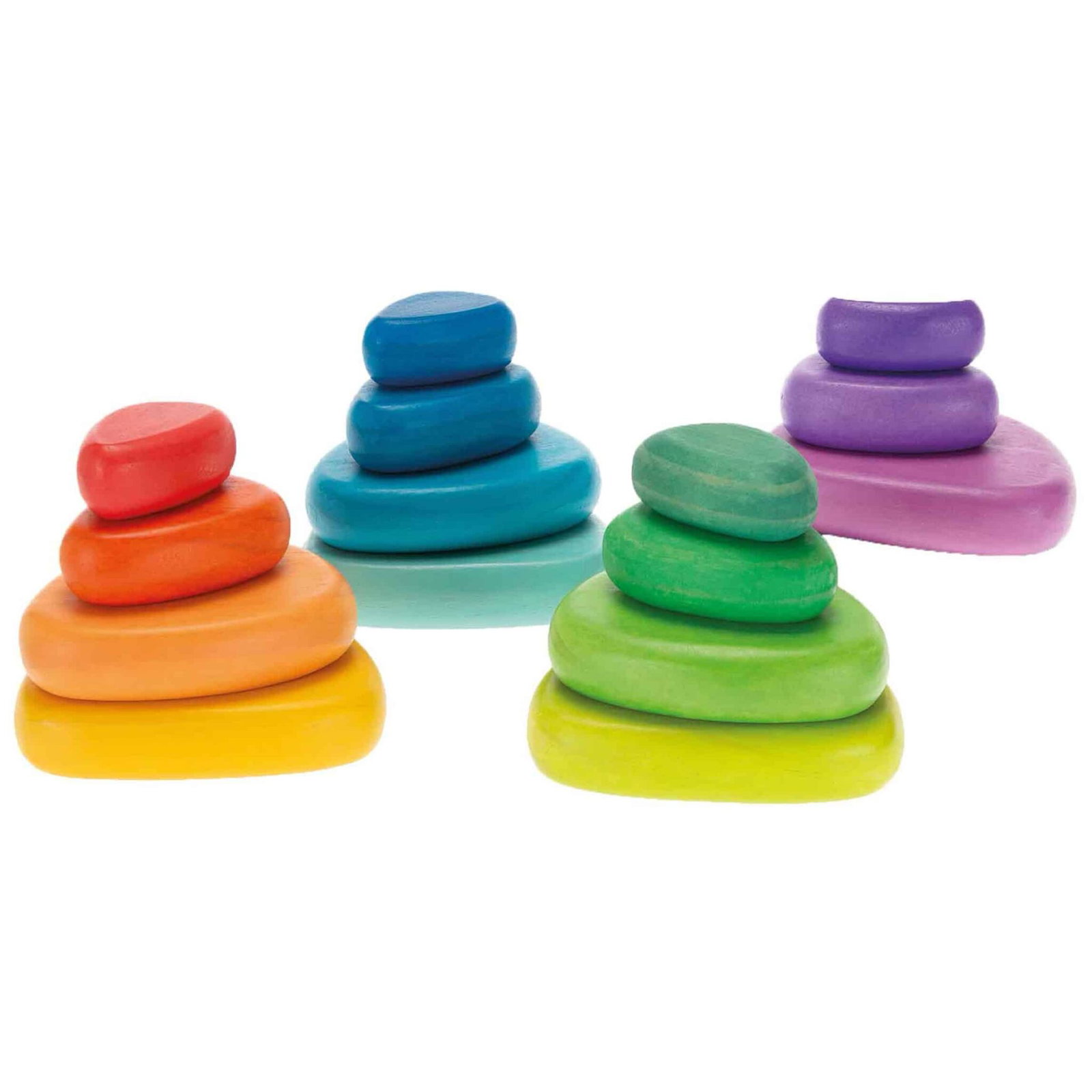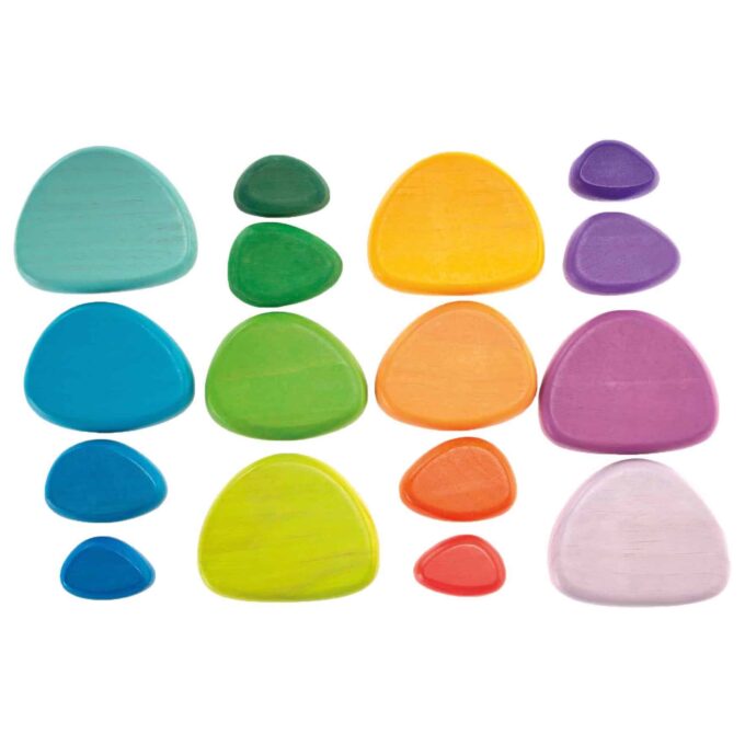 Holzbausteine „Regenbogen Kiesel“, 16-tlg. – Kreativität im Einklang mit der Natur
