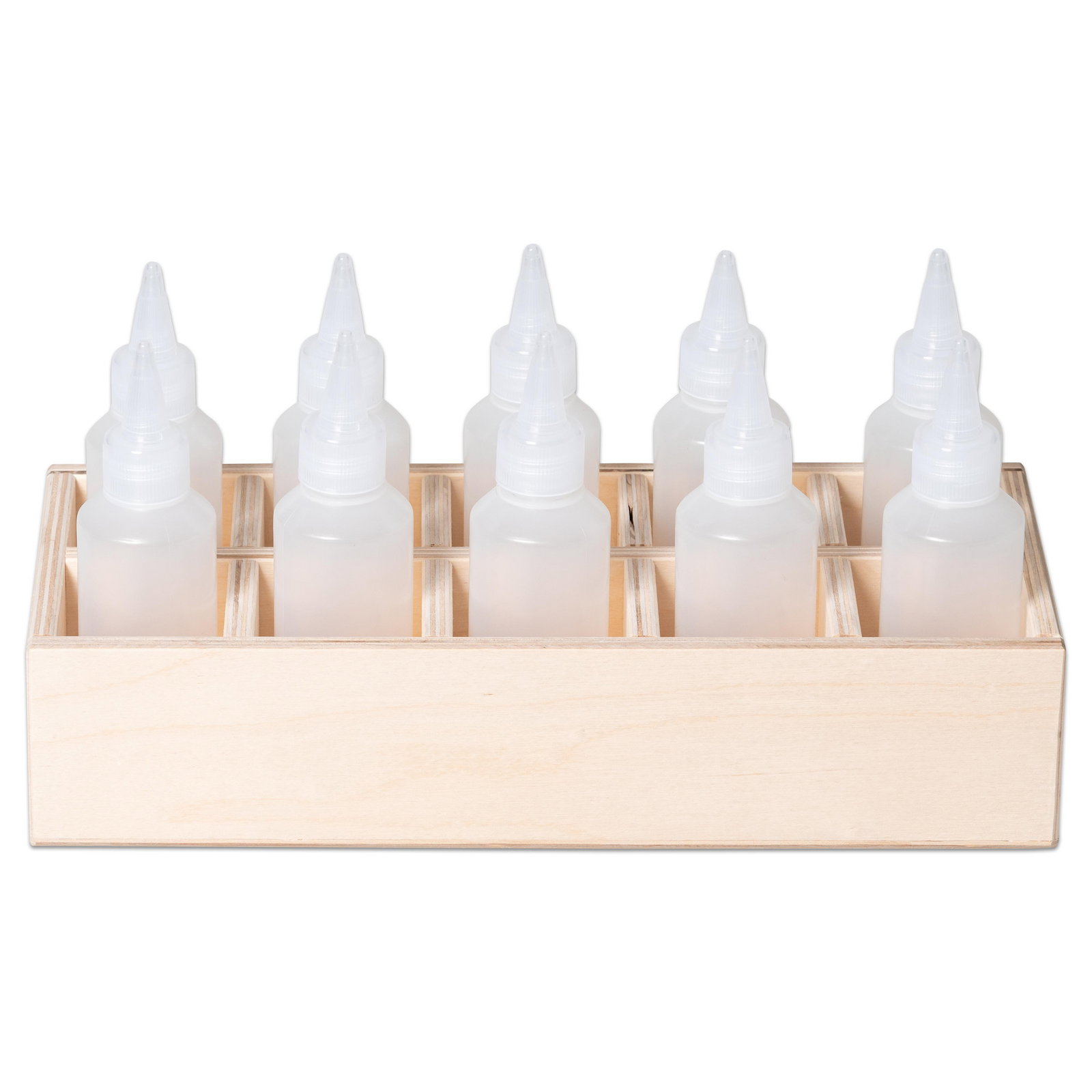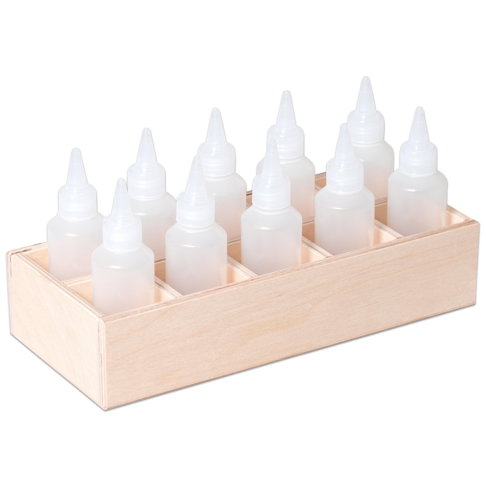 - Produkt: Set aus Holzbox und 10 Kleberflaschen