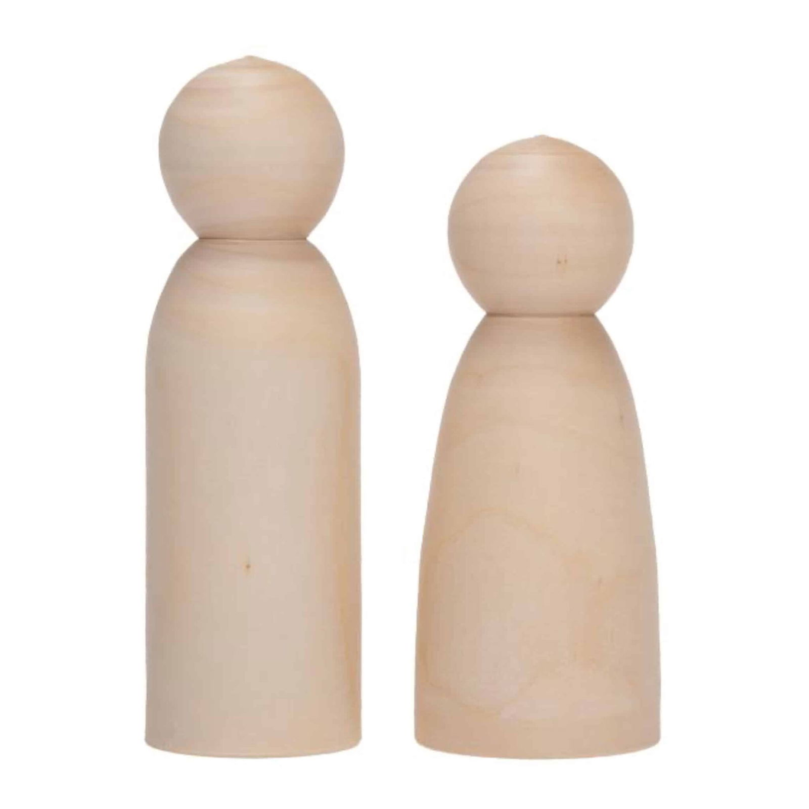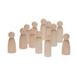 Das Set enthält insgesamt 12 Figuren in zwei verschiedenen Formen – sechs Figuren mit schrägem Körper (ca. 9 cm groß) und sechs mit geradem Körper (ca. 11 cm groß). Dank ihres größeren Durchmessers (Ø ca. 4 cm) bieten die Figuren eine optimale Griffigkeit für Kinderhände und Erwachsene. Sie können naturbelassen verwendet oder individuell bemalt, beklebt und gestaltet werden, um jedem Projekt eine persönliche Note zu verleihen.